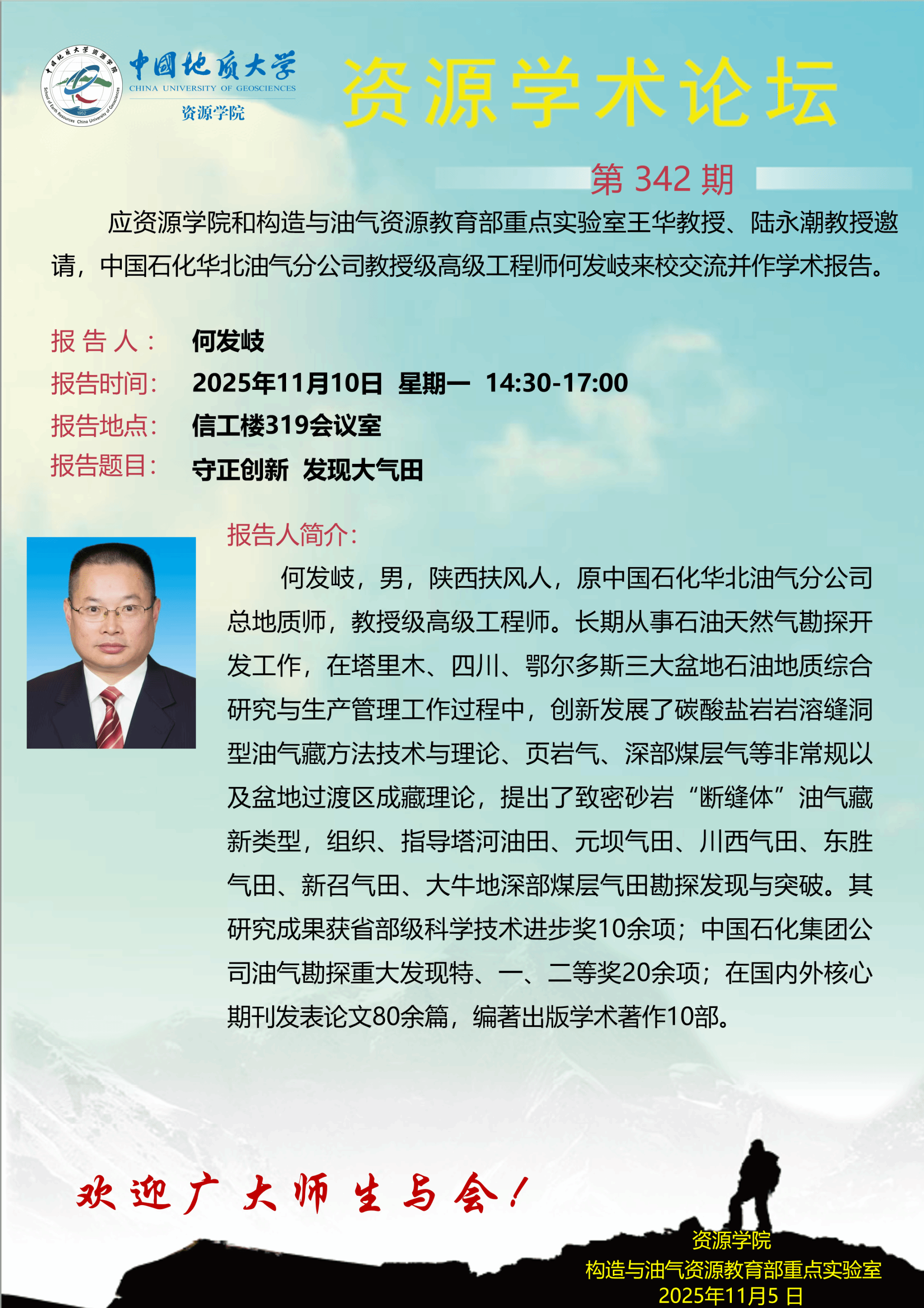【11月10日】第342期资源学术论坛:何发岐学术报告