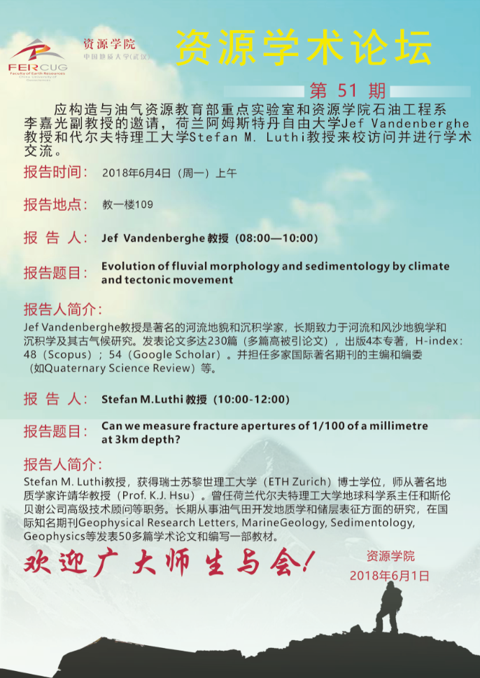 [6月1日]第51期资源学术论坛:Jeff Vandenberghe、Stefan M.Luthi学术报告