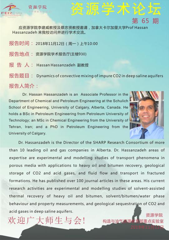 【11月12日】第65期资源学术论坛:Hassan Hassanzadeh学术报告