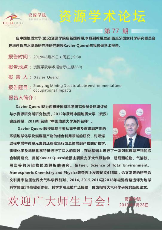 【3月29日】第77期资源学术论坛:Xavier Querol学术报告