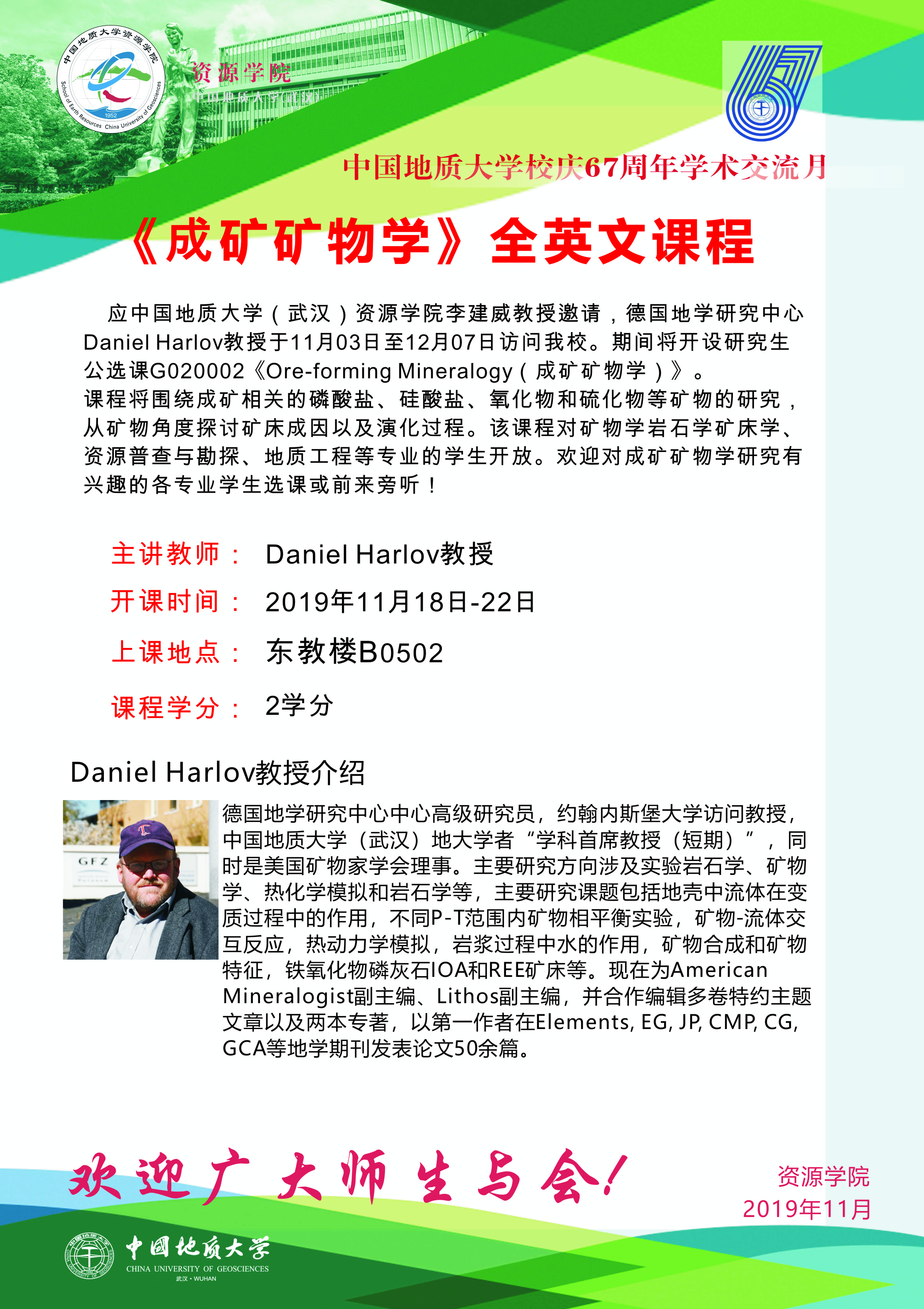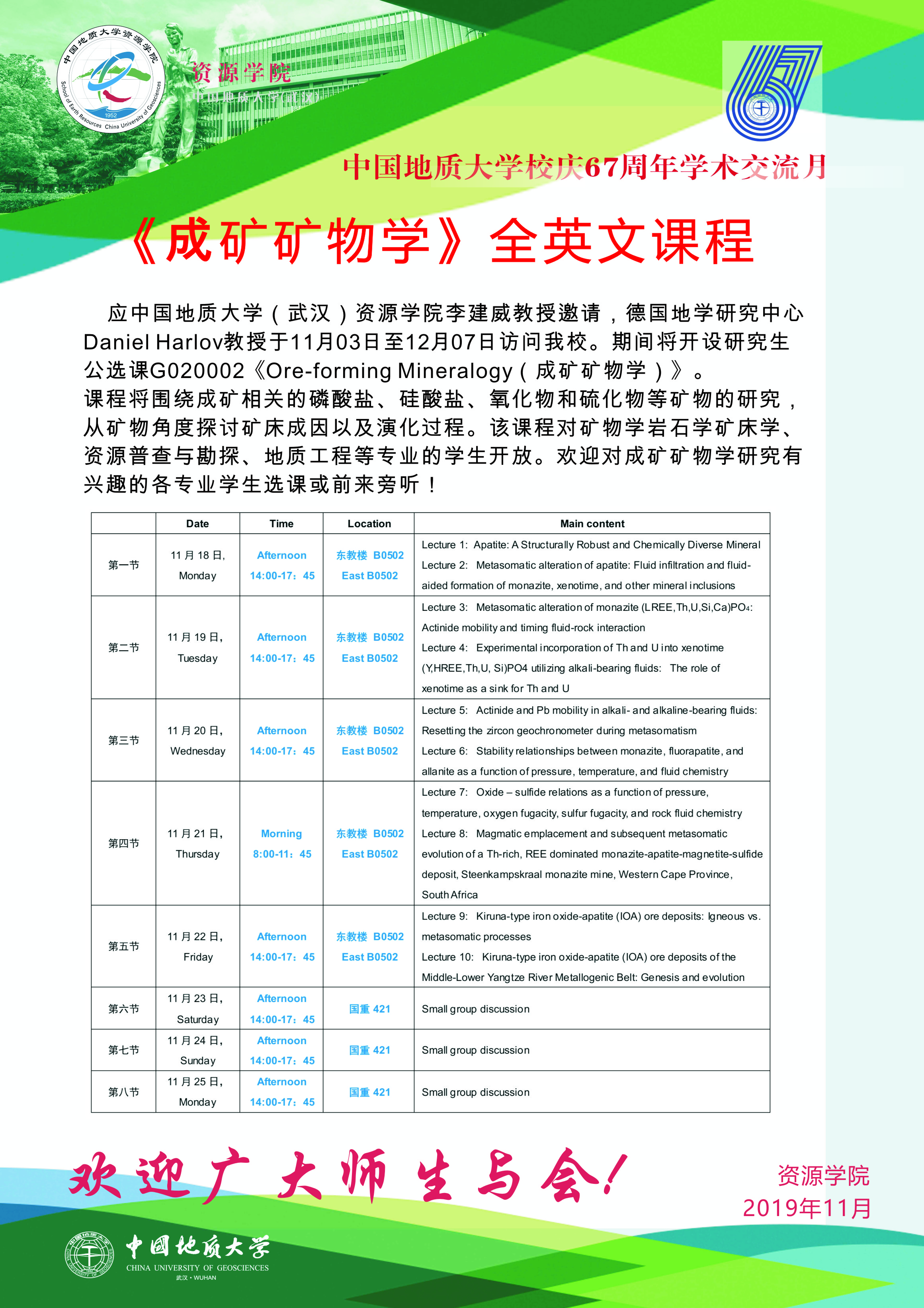 【11月18日-22日】Daniel Harlov《成矿矿物学》公选课