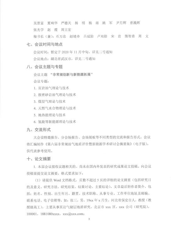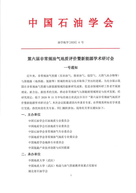 第六届非常规油气地质评价暨新能源学术研讨会一号通知