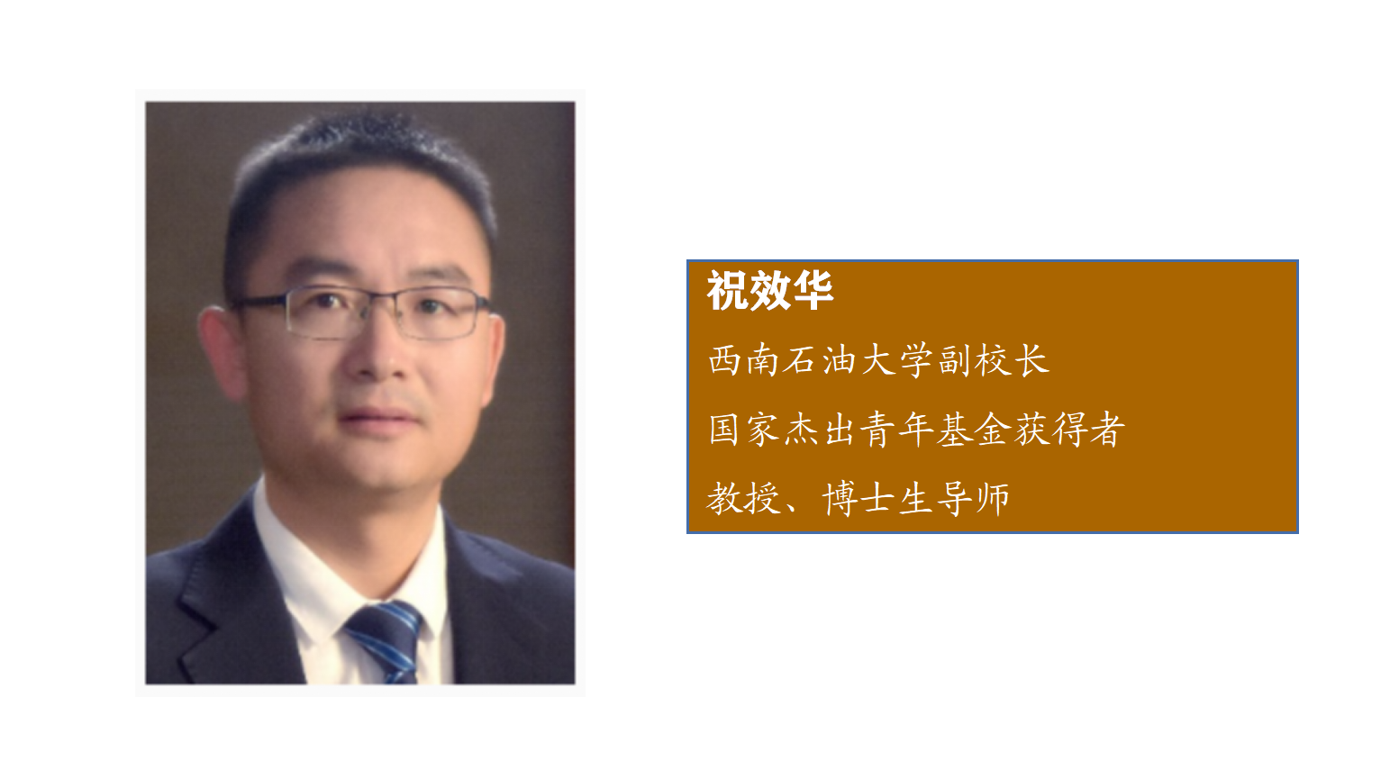 祝效华,男,1978年7月生,工学博士,二级教授。2022年7月起,任西南石油大学党委常委、副校长。中组部万人计划科技创新领军人才、国家杰出青年基金获得者、科技部中青年科技创新领军人才、中国科协中国青年科技奖、人社部百千万人才工程国家级人选、国务院政府特殊津贴专家、国家自然科学基金委优青、教育部新世纪优秀人才、四川省学术和技术带头人、霍英东青年教师奖、孙越崎青年科技奖、四川省杰青、四川省青年科技奖和四川省先进工作者。兼任石油天然气装备教育部重点实验室主任、国家油气装备技术虚拟仿真实验教学中心主任、国家油气钻井装备工程技术中心学术委员,《石油学报》《天然气工业》《Engineering Failure Analysis》《Journal of Hydrodynamics》等9个学术期刊编委。主要从事油气井管柱力学、井下工具和岩石破碎学方面的理论与应用技术研究,是四川省“钻井提速”青年科技创新团队负责人;主持国家自然科学基金5项(青年、优青、面上、重点、杰青各1项)、国家重点研发计划课题1项、国家油气重大专项子课题下属联合研究任务4项。获国家科技进步二等奖1项,省部级科技进步一、二、三等奖分别5、5、3项;作为第一设计人授权发明专利50件、PCT专利1件,专利转让许可11项次,获四川省专利实施与产业化奖5项;发表论文260篇,其中SCI检索119篇,EI检索65篇,出版专著5部(第一作者3部)。