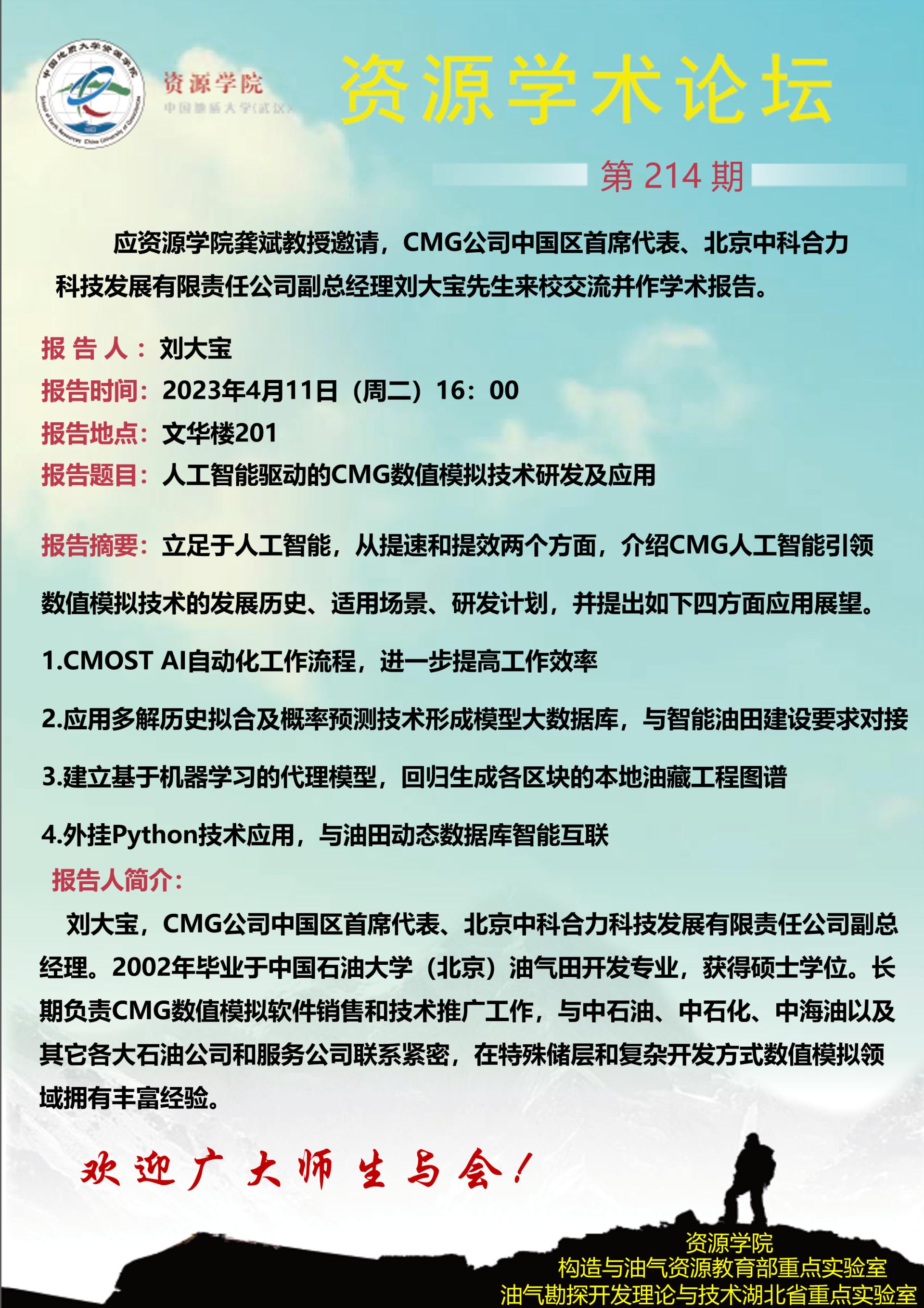 【4月11日】第214期资源学术论坛:刘大宝学术报告