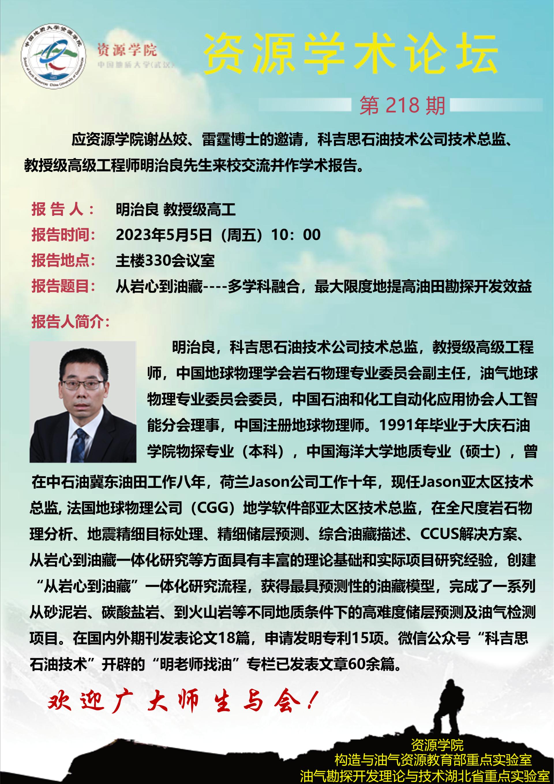 【5月5日】第218期资源学术论坛:明治良学术报告