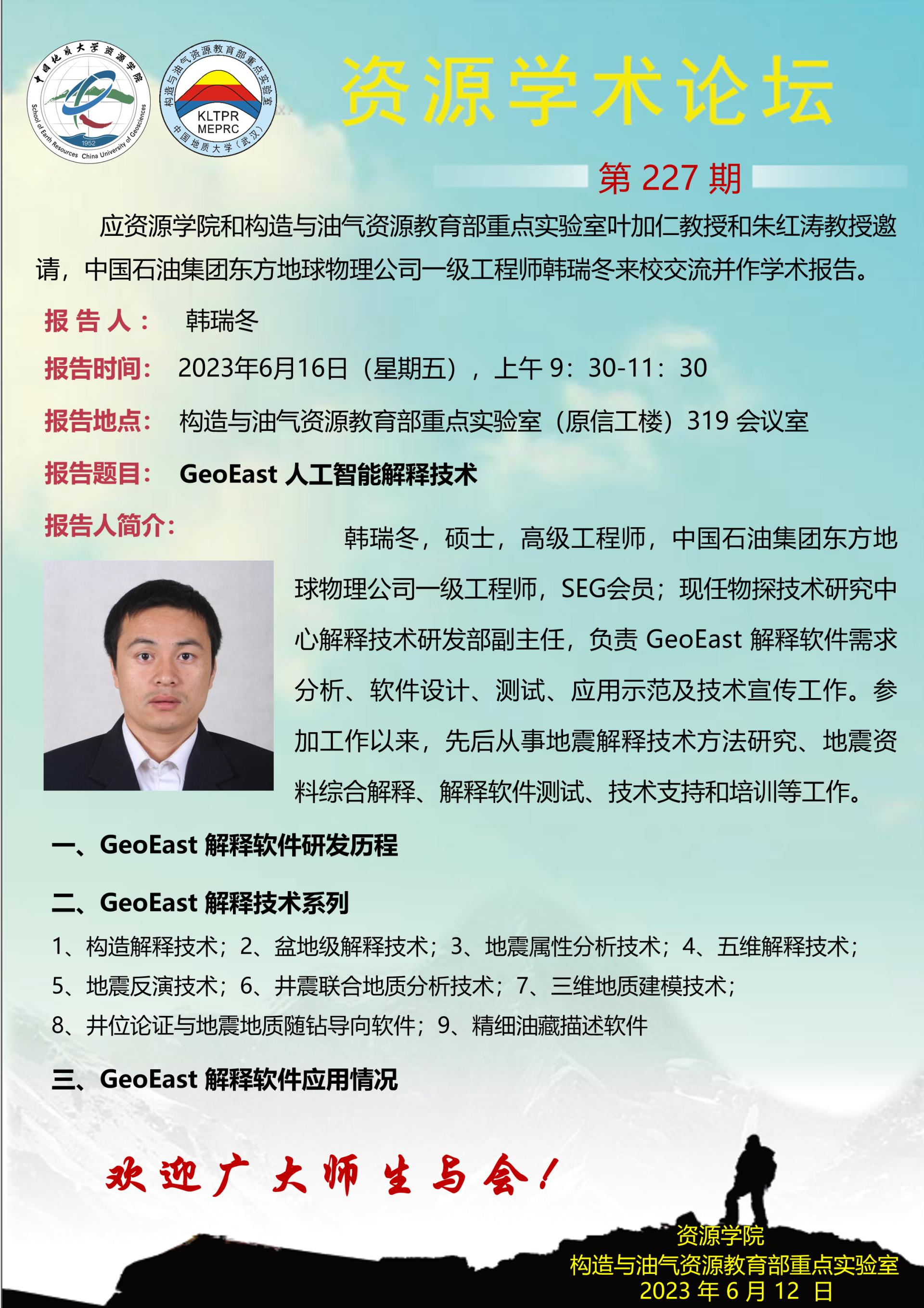 【6月16日】第227期资源学术论坛:韩瑞冬学术报告