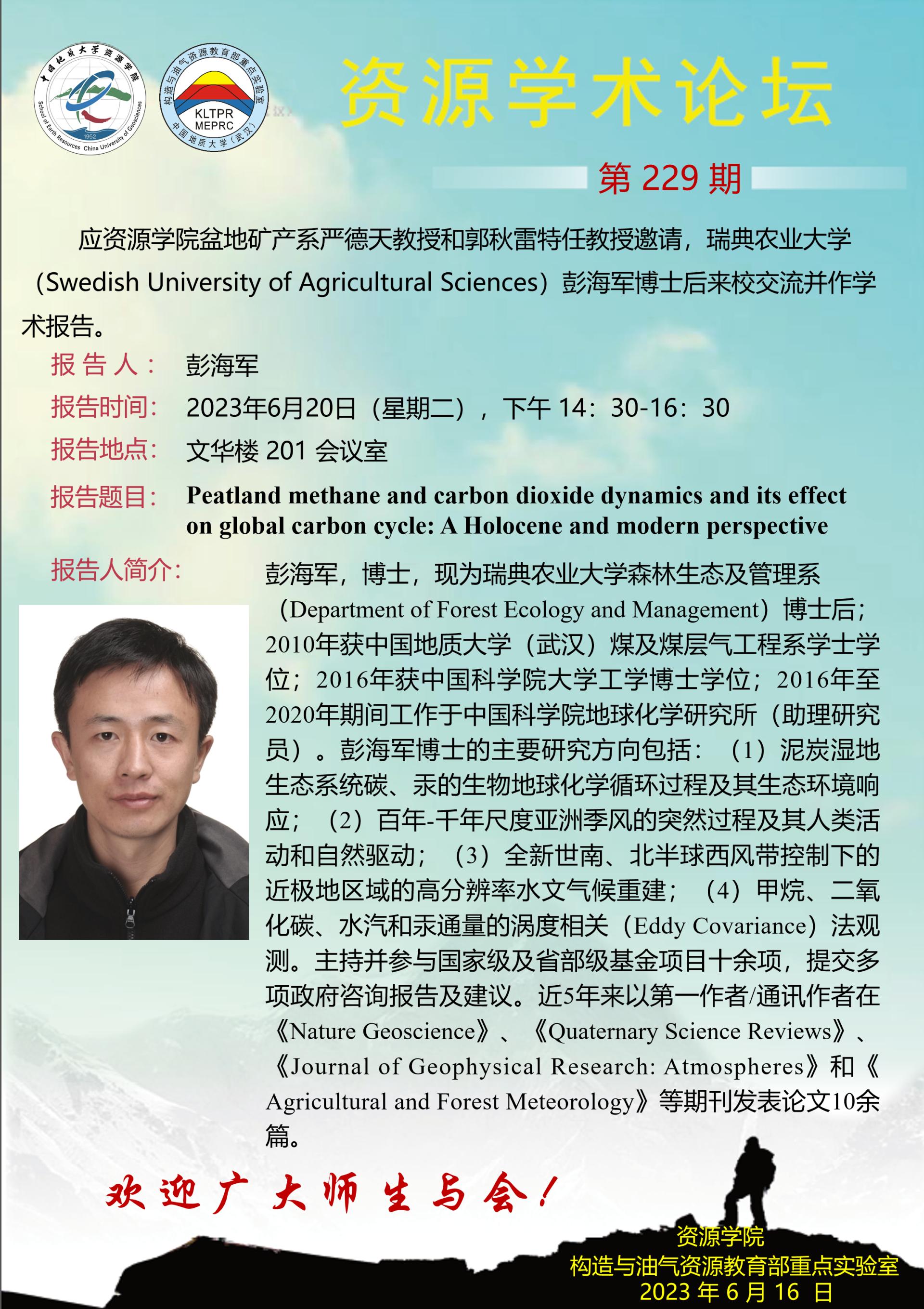 【6月20日】第229期资源学术论坛:彭海军学术报告