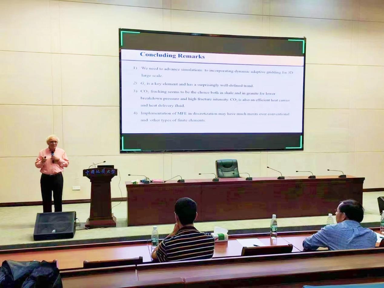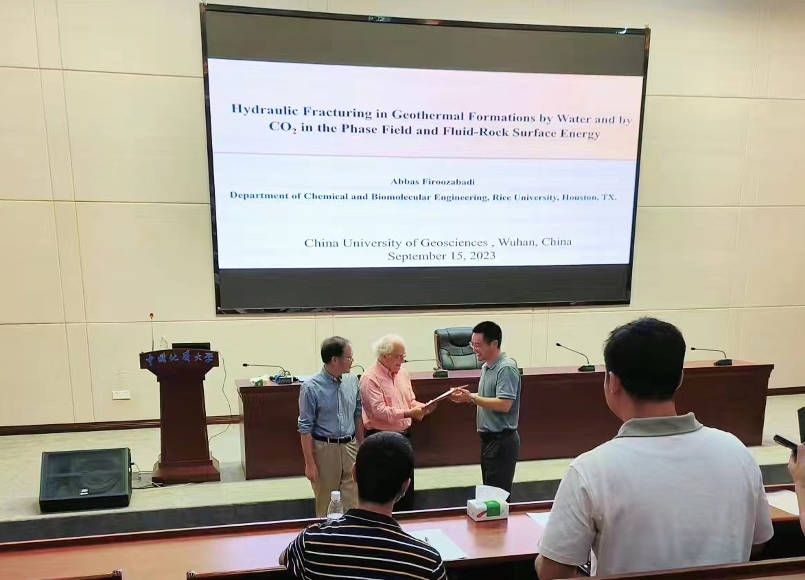 严德天教授和潘焕泉教授邀请,9月14日,美国工程院院士、美国莱斯大学杰出教授、美国油藏工程研究所所长Abbas Firoozabadi来校交流并作学术报告。