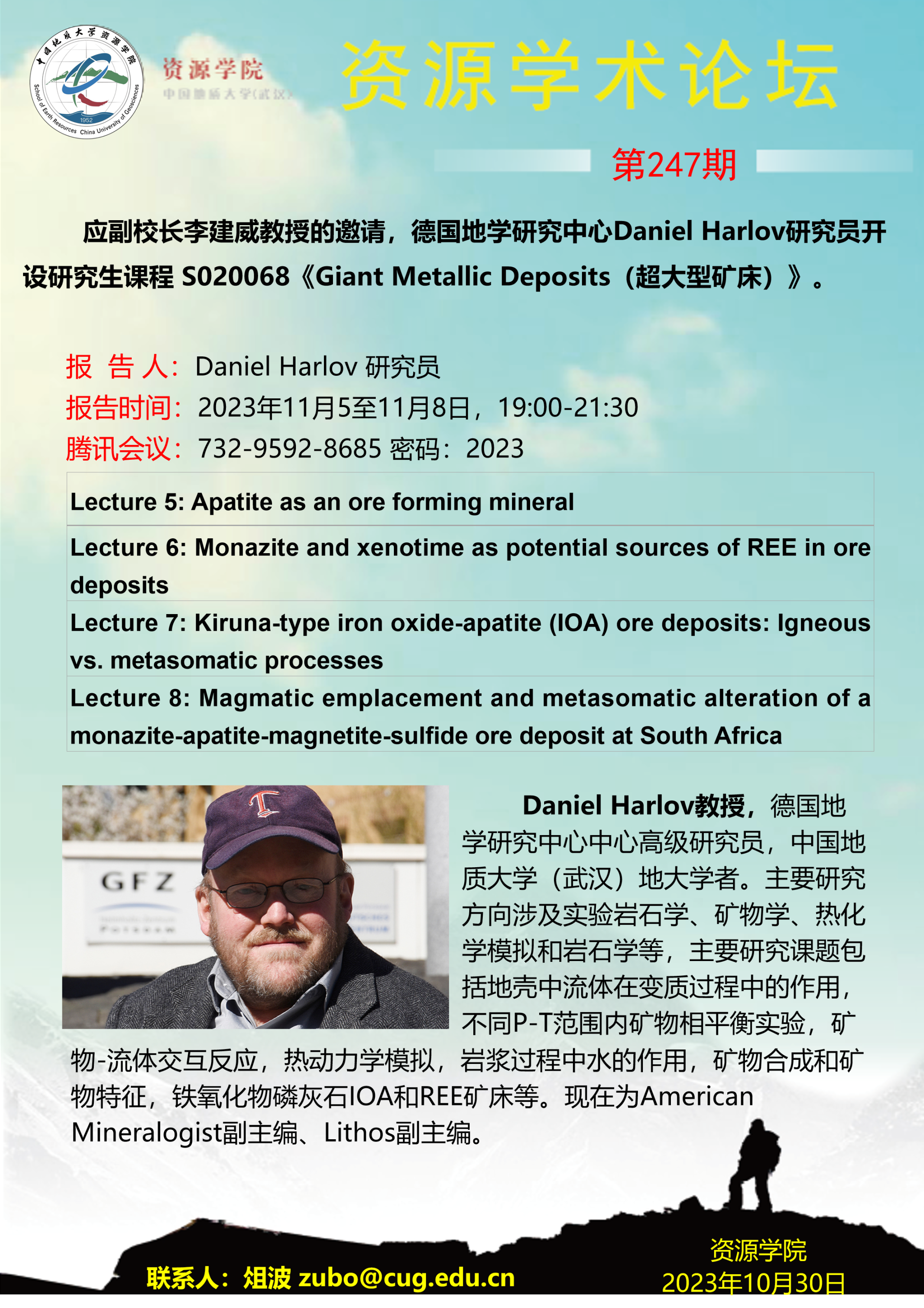 【11月5日-11月8日】第247期资源学术论坛:Daniel Harlov学术报告