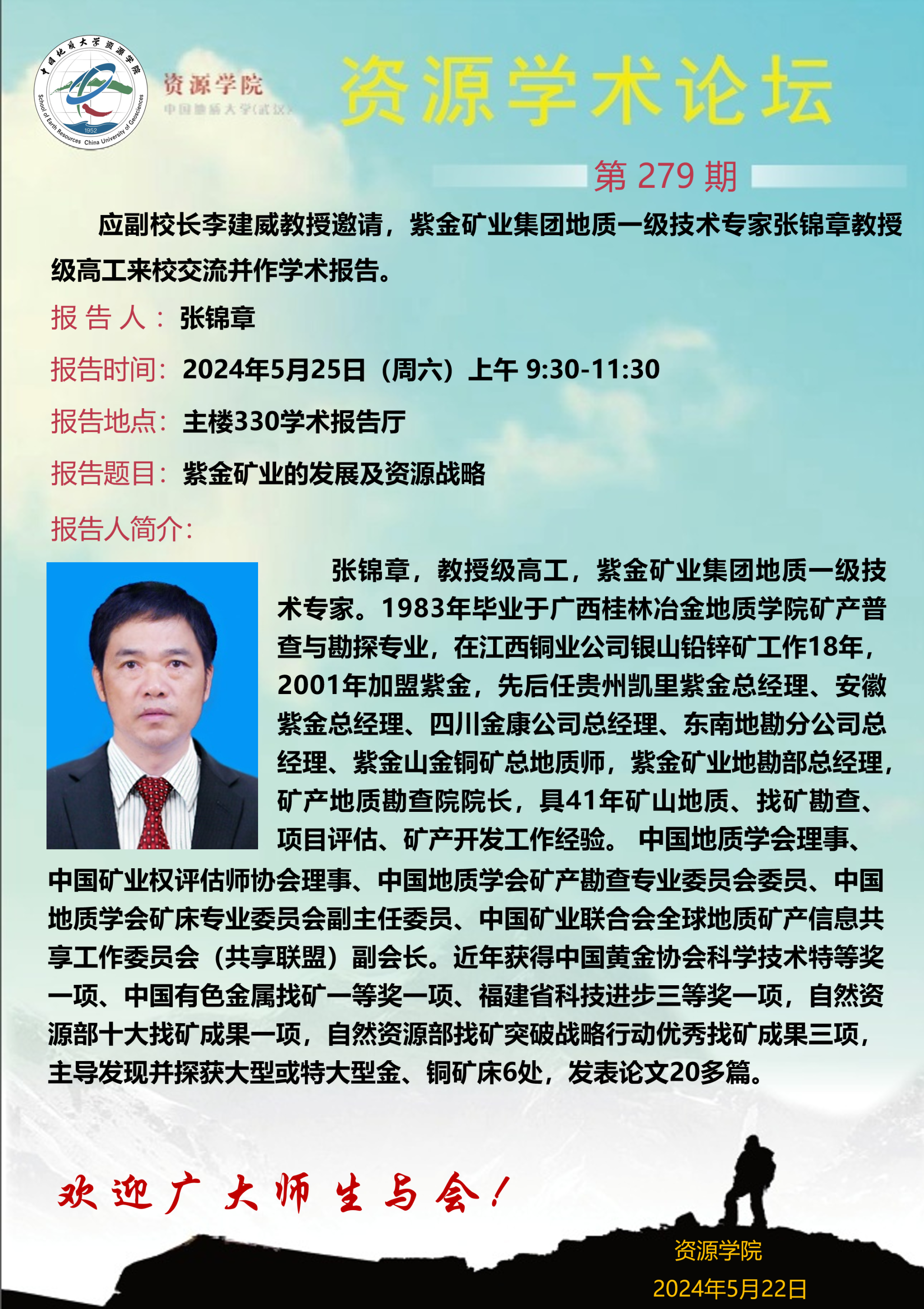 【5月25日】第279期资源学术论坛:张锦章学术报告