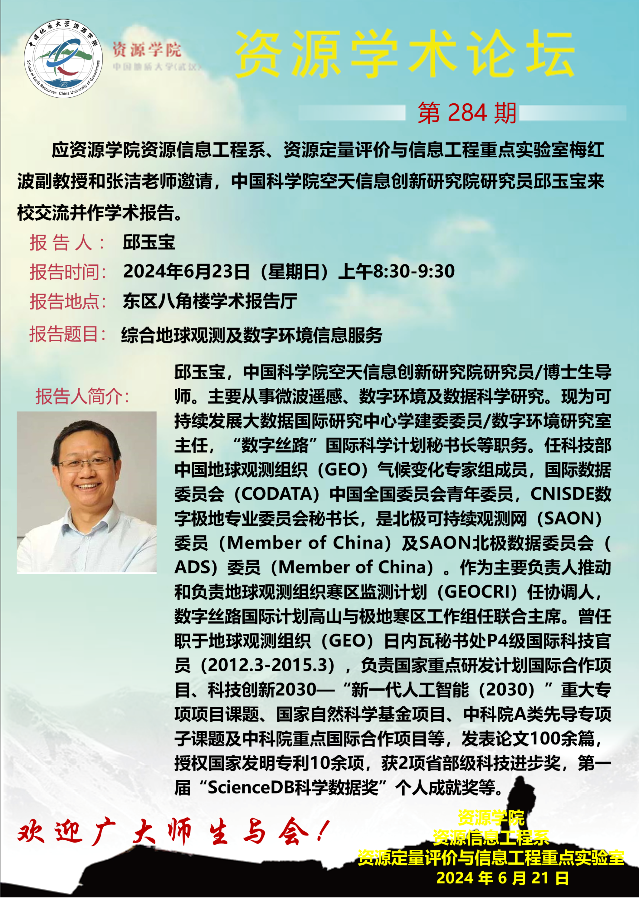 【6月23日】第284期资源学术论坛:邱玉宝学术报告