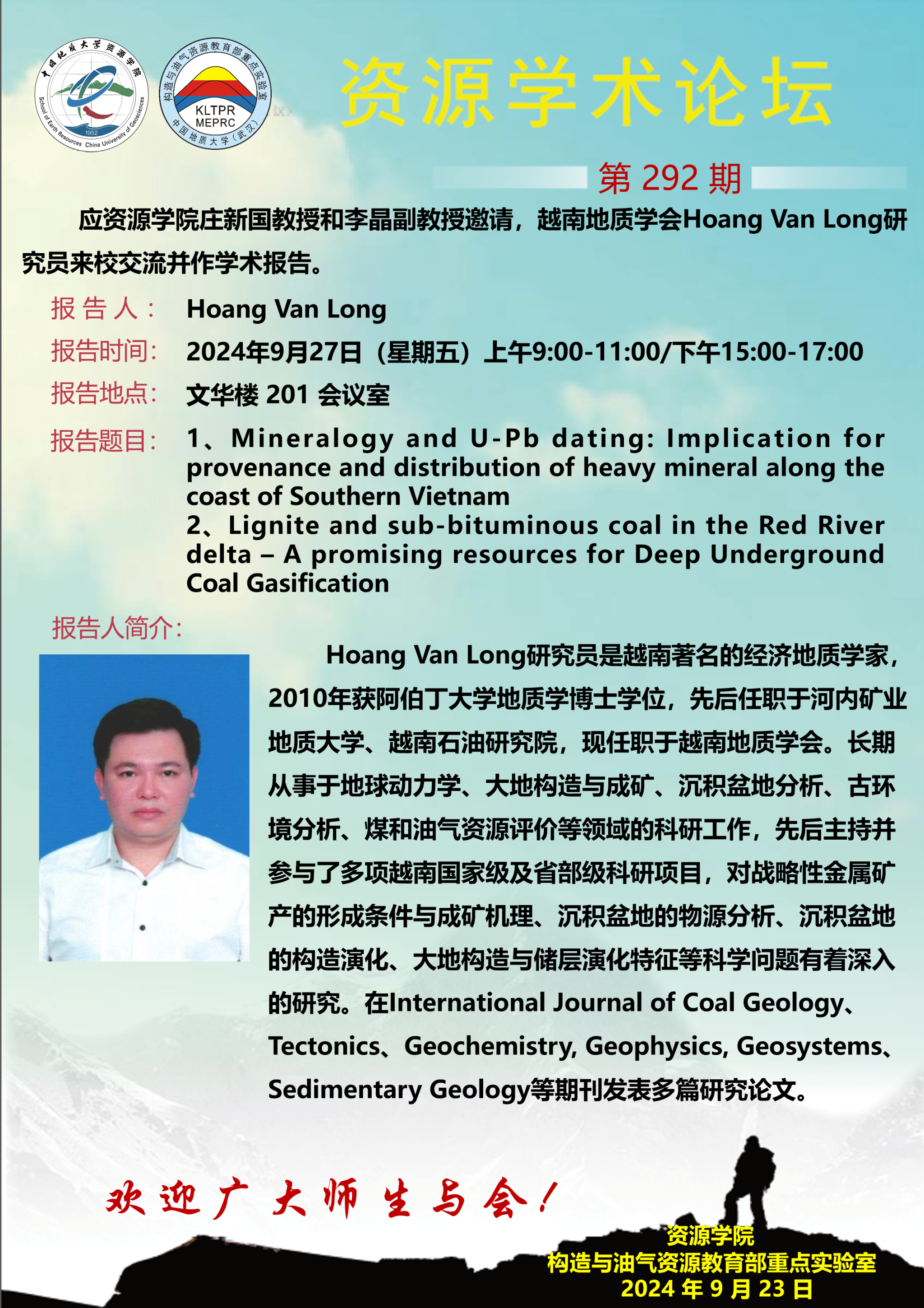 【9月27日】第292期资源学术论坛:Hoang Van Long学术报告