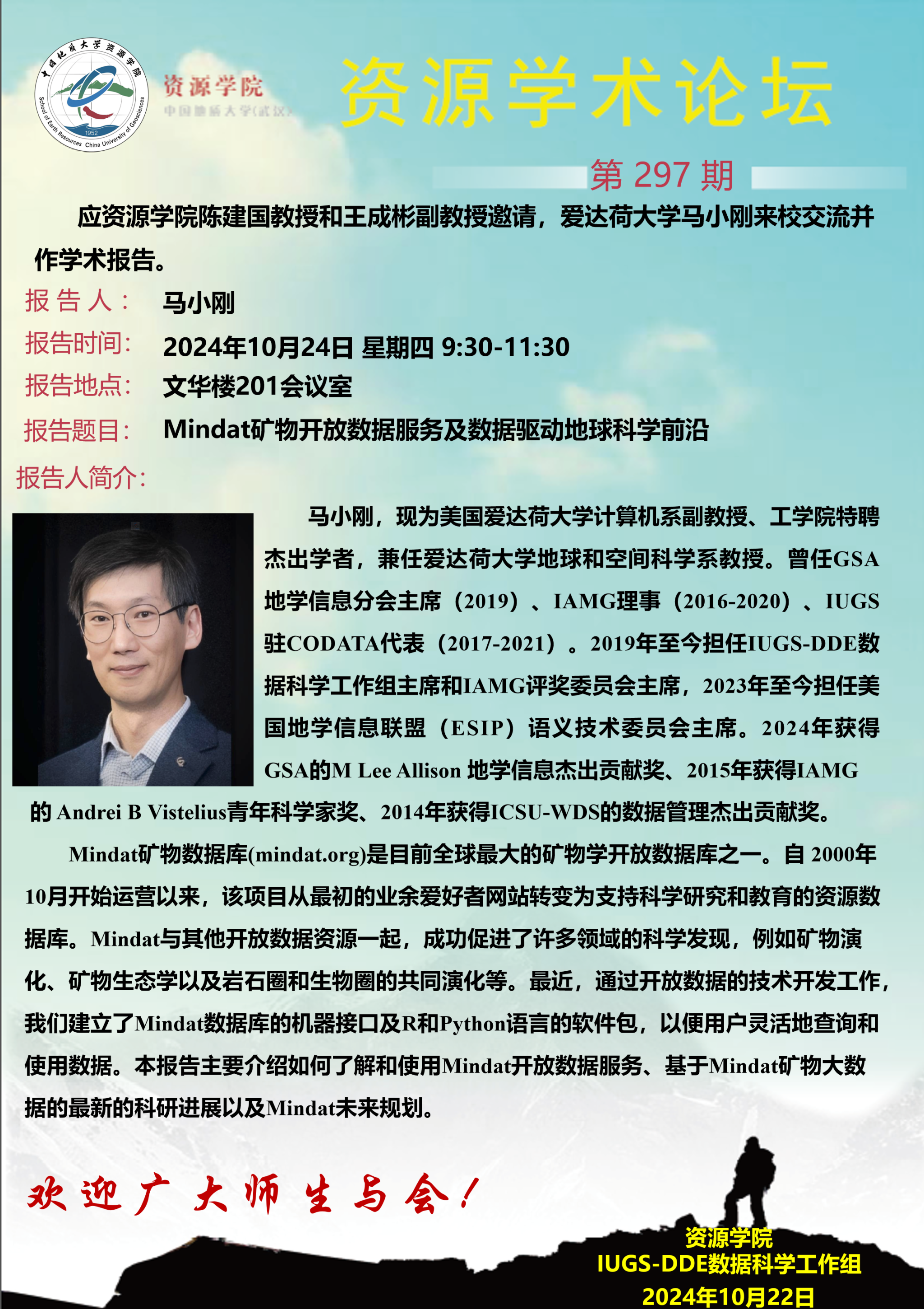 【10月24日】第297期资源学术论坛:马小刚学术报告