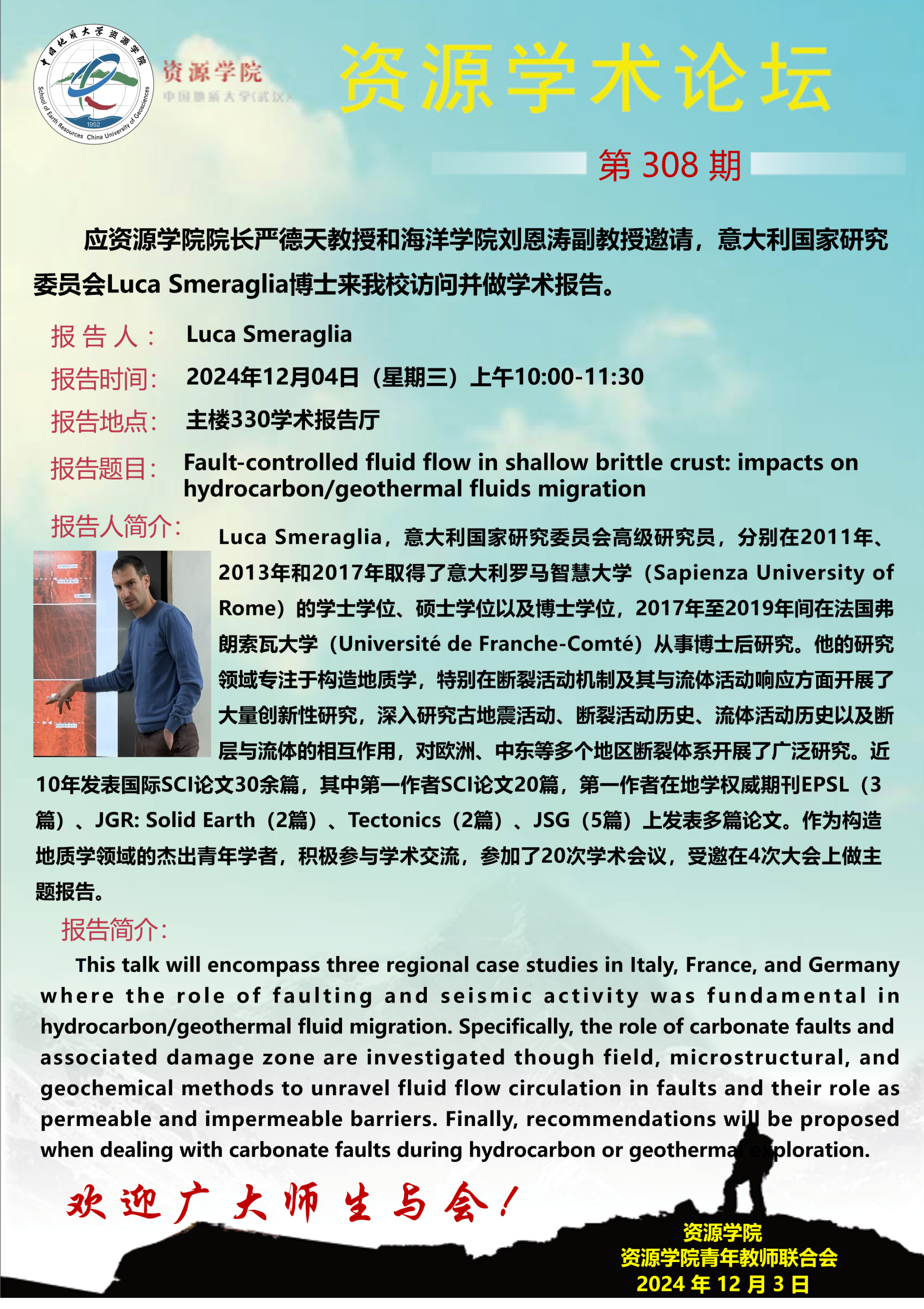 【12月4日】第308期资源学术论坛:Luca Smeraglia学术报告