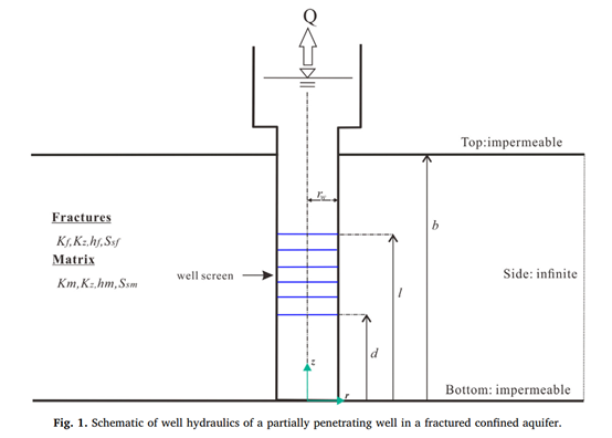 近日,国际著名期刊《Journal of Hydrology》刊发了我院“油气藏渗流力学与数值模拟”团队特任教授王磊及地空学院蔡建超教授合作的最新研究成果——“Unsteady flow to a partially penetrating pumping well with wellbore storage in a dual-permeability confined aquifer”。
