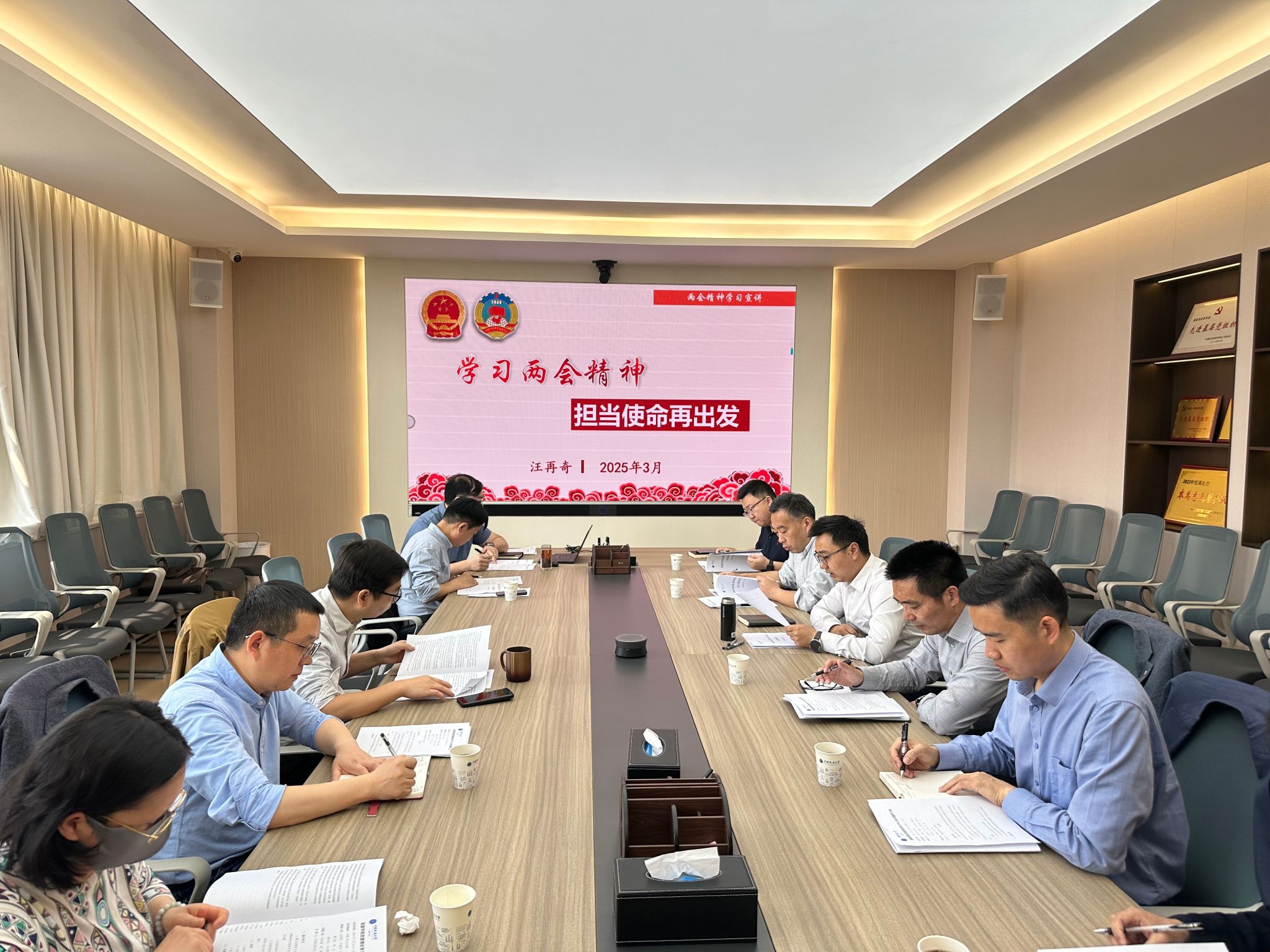 汪再奇传达学习习近平总书记重要讲话和2025年全国两会精神,传达学习中央党的建设工作领导小组有关会议精神,领学学校《关于开展深入贯彻中央八项规定精神学习教育的实施方案》,对学院学习教育做动员部署。