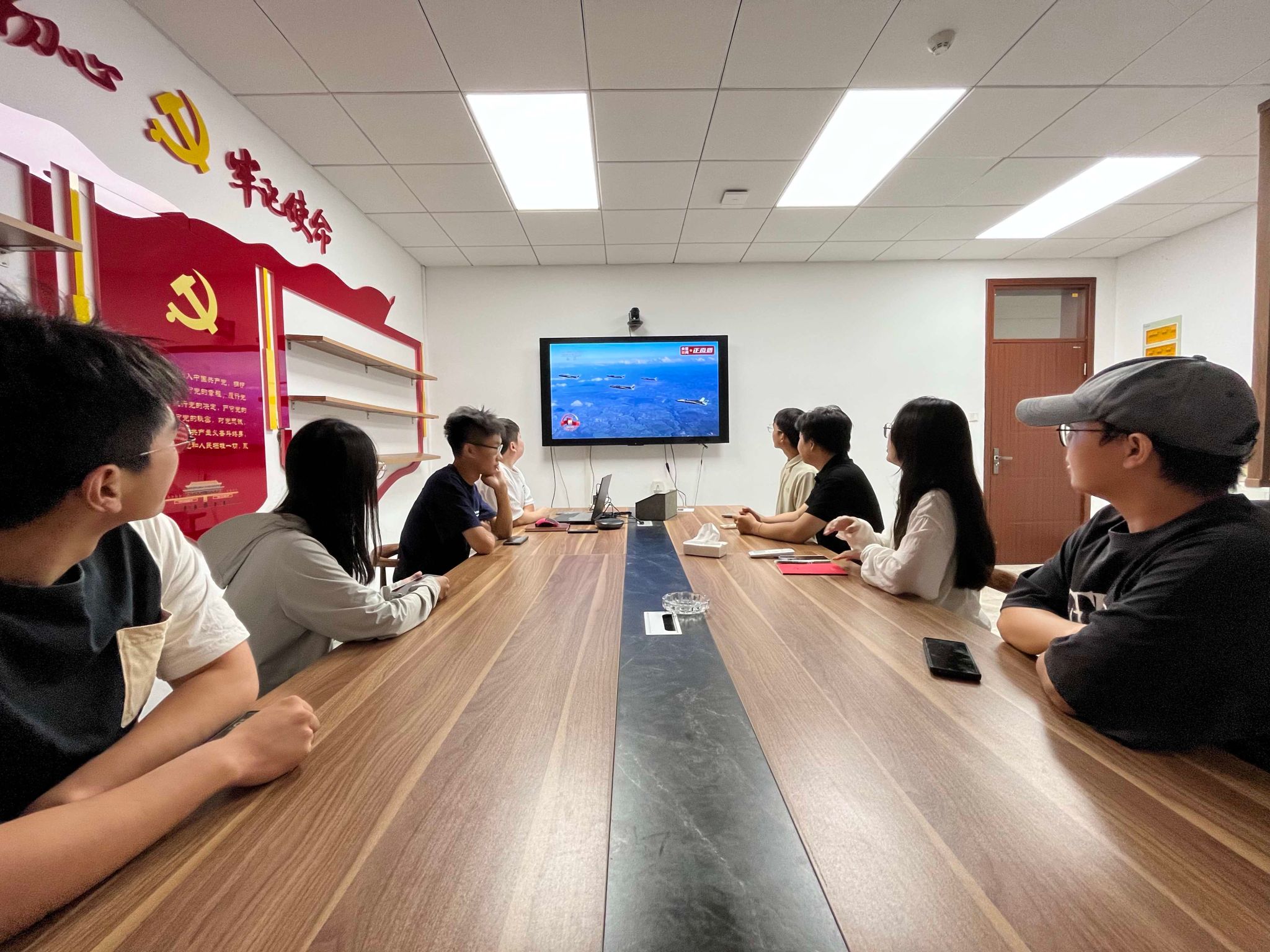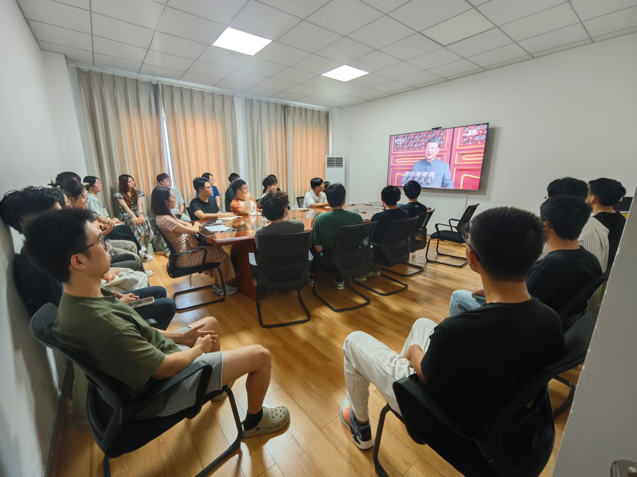 组织师生观看纪念中国人民抗日战争暨世界反法西斯战争胜利80周年大会。学院党委书记汪再奇、院长朱红涛、党委副书记谭文伦与院直党支部全体成员于主楼330会议室集中观看,各师生党支部通过线上平台同步收看,共同回顾那段艰苦卓绝、波澜壮阔的历史岁月,深切缅怀革命先烈,弘扬伟大抗战精神。