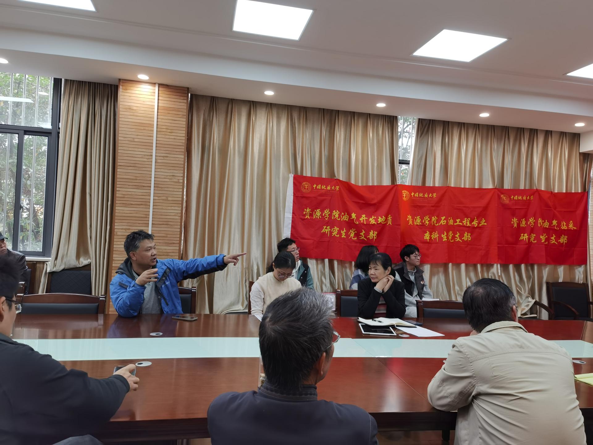 油气开发地质研究生党支部书记张阿芮、钻采工程研究生党支部李涛、本科生党员代表高旭东结合自己求学经历谈了学习党的二十大精神的感悟。他们说到,老师们对待教学计划精心准备、对待科研严肃认真、对待学科建设长远规划的态度令人印象深刻,并对本科课程实践环节的设置提出了建议。