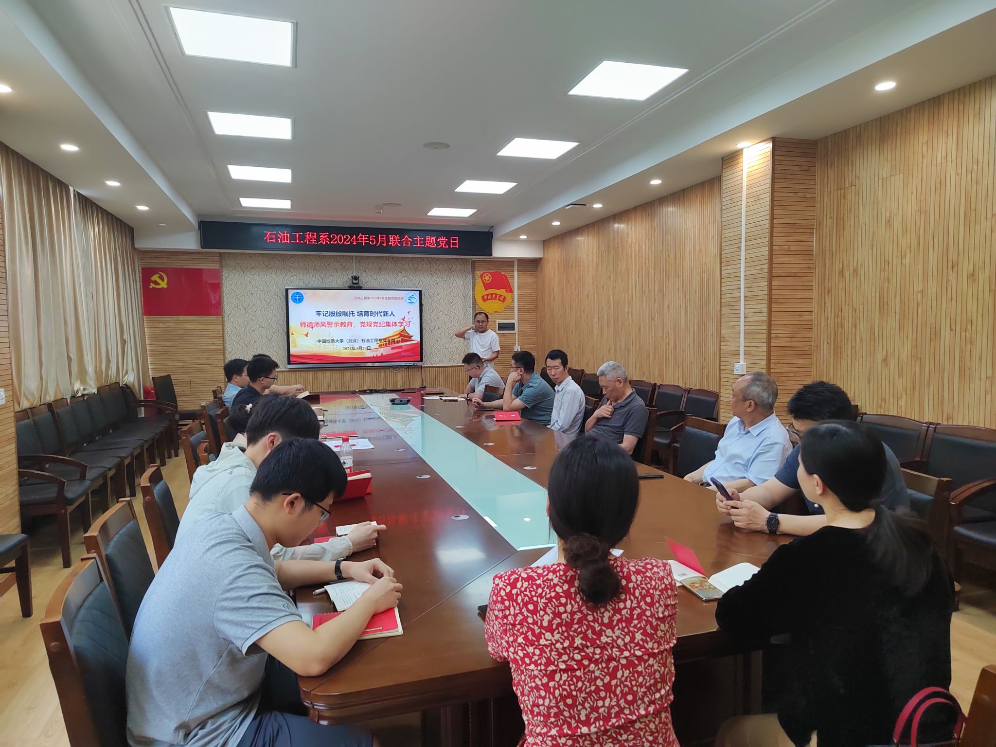 石油工程系师生党支部联合开展“落实党纪学习教育,推动学科稳步发展”主题党日活动暨党纪学习教育。石油工程系教工党支部、石油工程系本科生党支部全体党员参加会议。