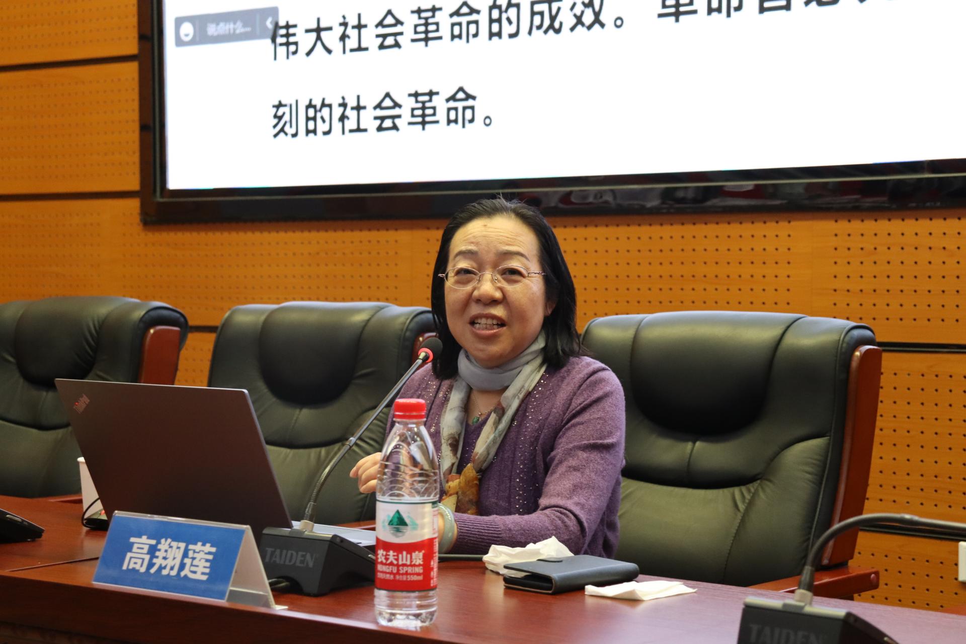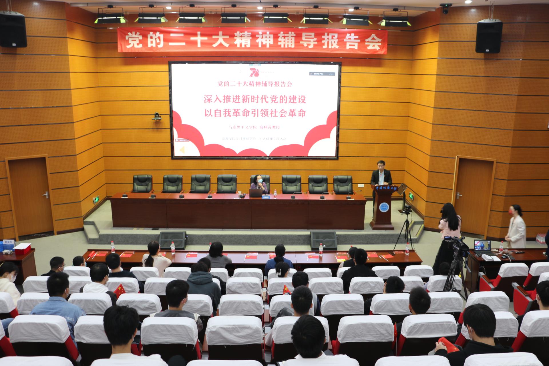举行党的二十大精神辅导报告会,马克思主义学院高翔莲教授应邀作专题辅导报告。学院院直党支部成员,学生党员,第二十七期入党积极分子培训班学员线上线下参加报告会。党委副书记谭文伦主持会议。