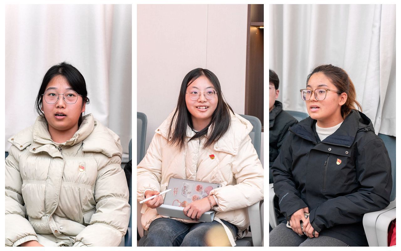 “智热星合”创业团队负责人、第十四届“挑战杯”创业计划竞赛全国银奖获得者高旭东以以《不忘炙热初心 仰望浩瀚星河》为主题,分享了在实践工作与科研创新的双重挑战中不断磨砺成长的经历;保研至北京大学、现任油气专业本科生党支部书记符亦飞以《青春逐梦行》为题,分享了大学四年以来在学生工作领域的成长历程与深刻感悟;签约长庆油田、盆地矿产专业2025届毕业生刘欣以《不负心中热爱与理想》为题,分享了自己在志愿服务实践中汲取力量、明确人生方向的经历。