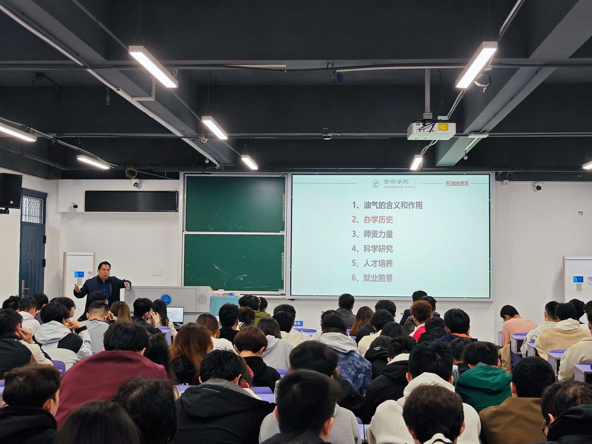 在教三楼306举行第十一期“零距离”院领导接待日暨学科专业建设发展报告会。学院党委副书记谭文伦、石油地质系主任叶加仁、盆地矿产系党支部书记王小明、资源系教师姚卓森,专兼职辅导员及2024级地质类(资源能源)学生参加。2024级辅导员刘睿主持会议。