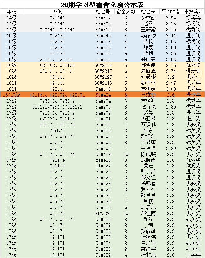 1.第20期结题:只针对于在上学期已成功立项的宿舍(见附表)。