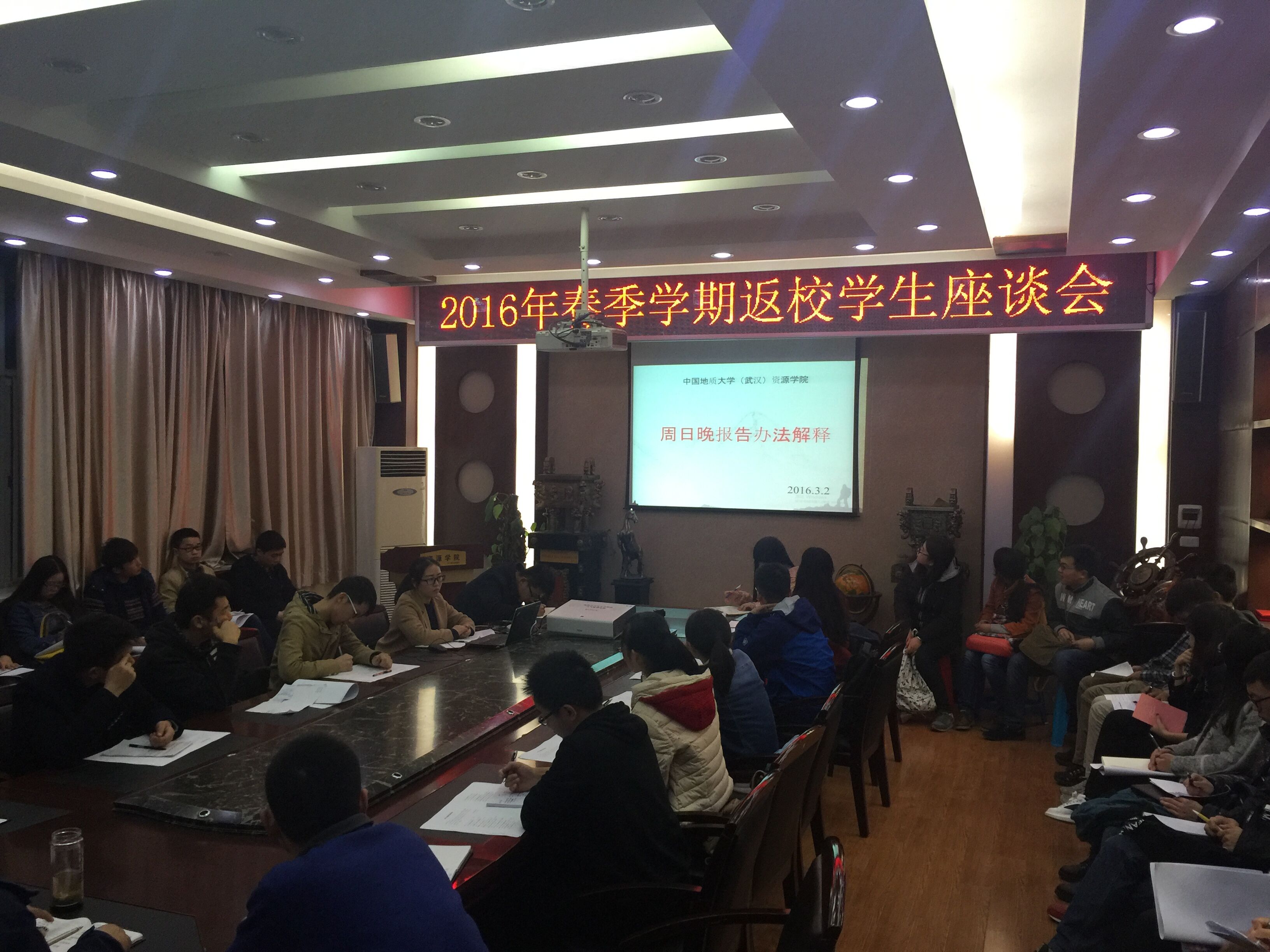 于2016年3月2日在主楼328学术报告厅召开了寒假返校学生思想动态调研座谈会,与来自部分学生代表及各班安全信息委员等进行深入交流。院党委副书记张建华主持会议。