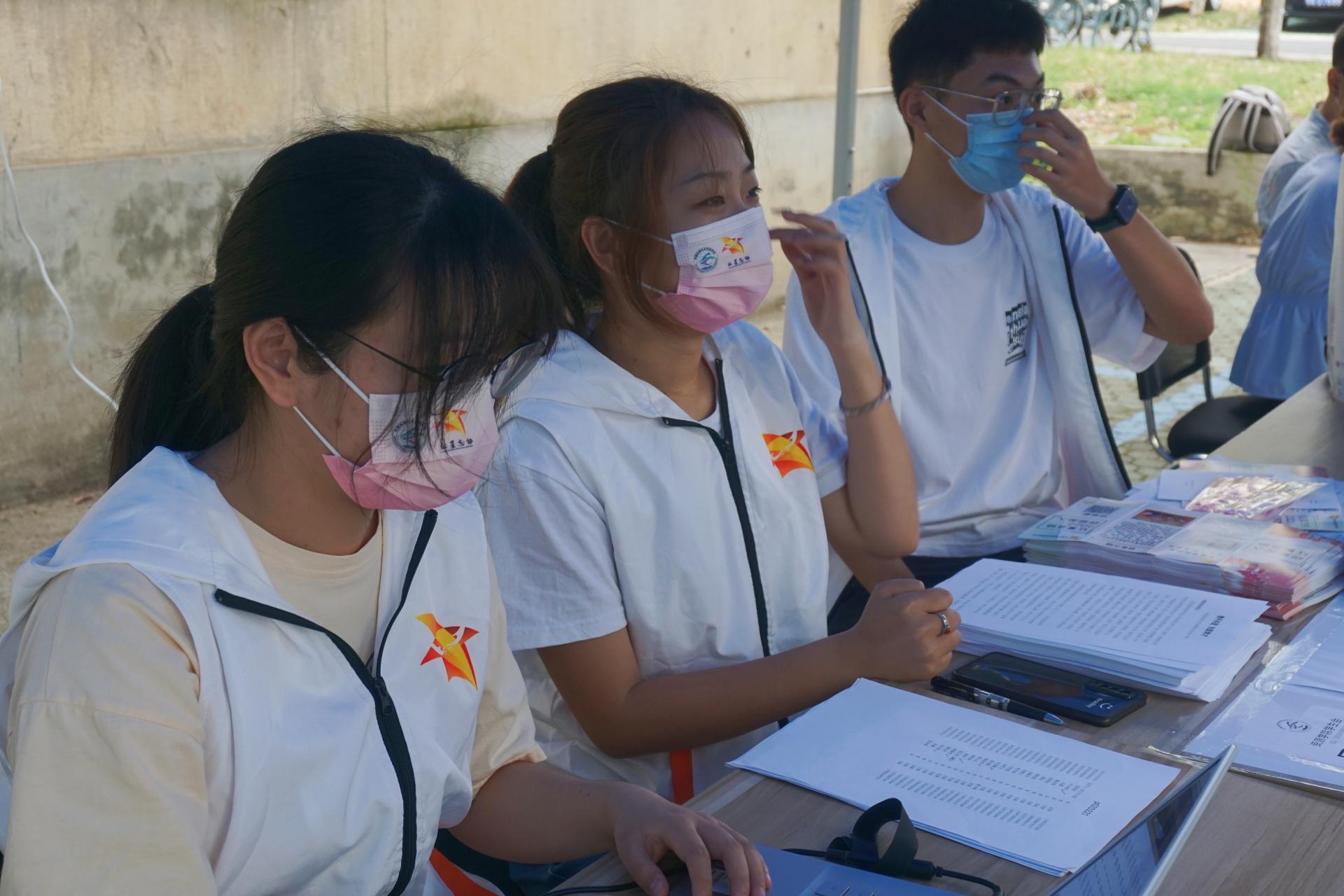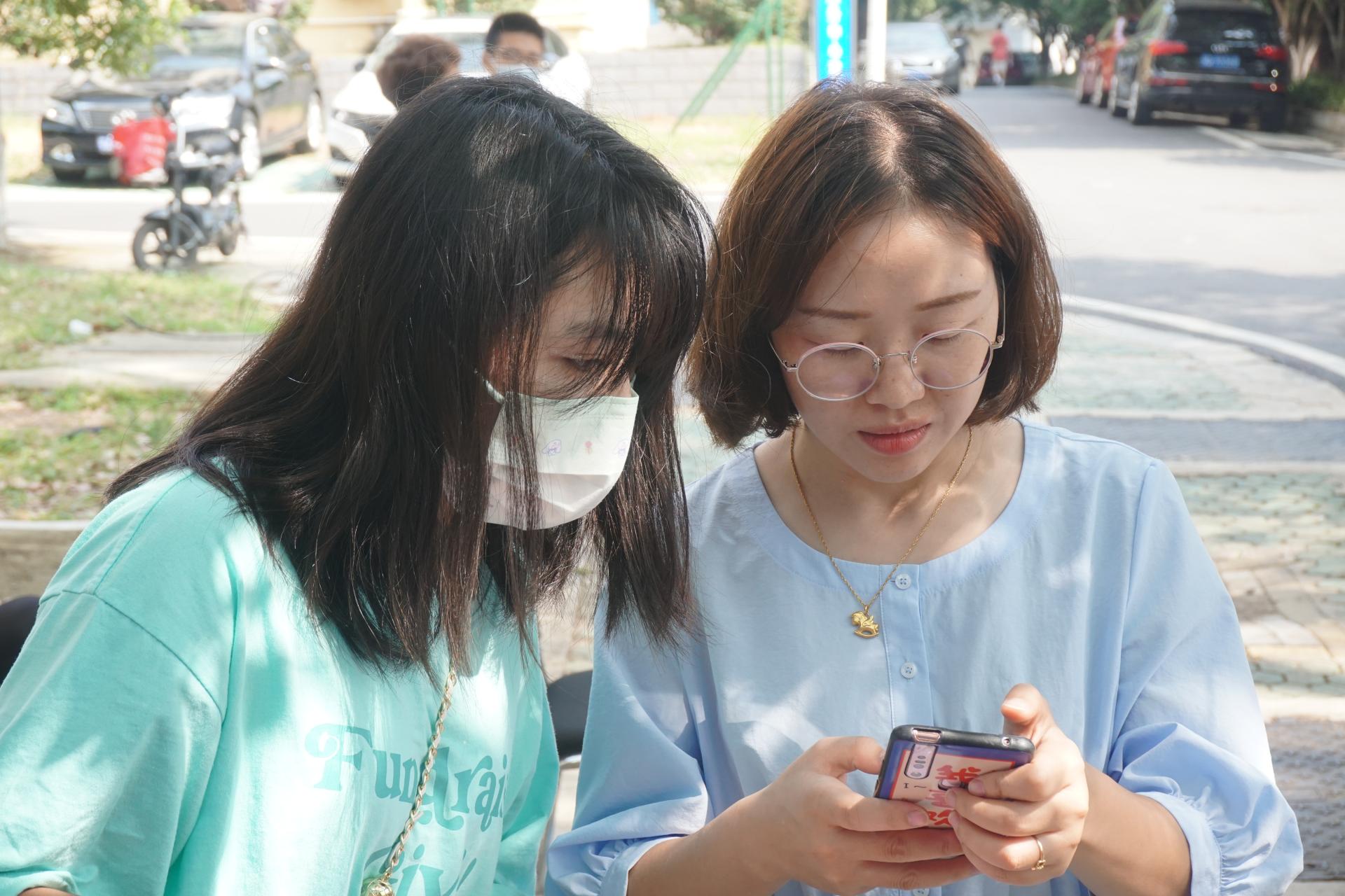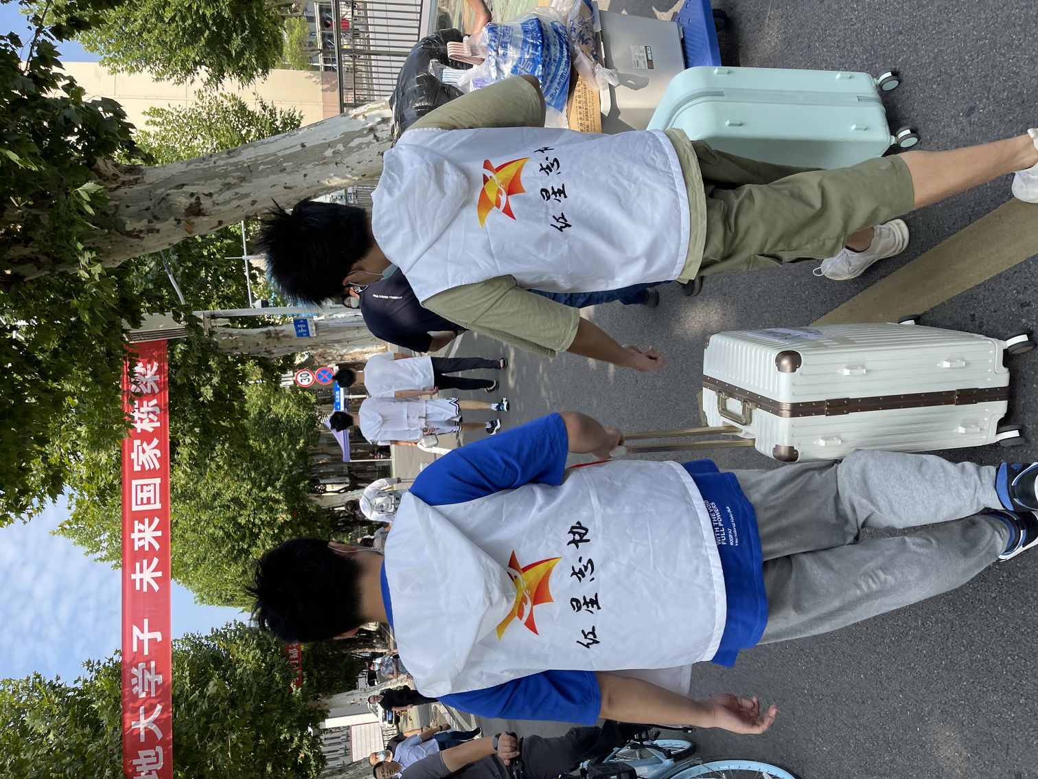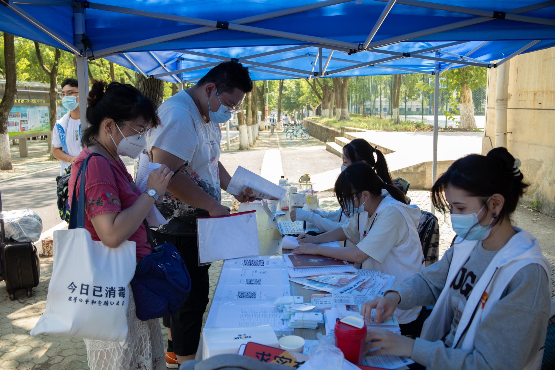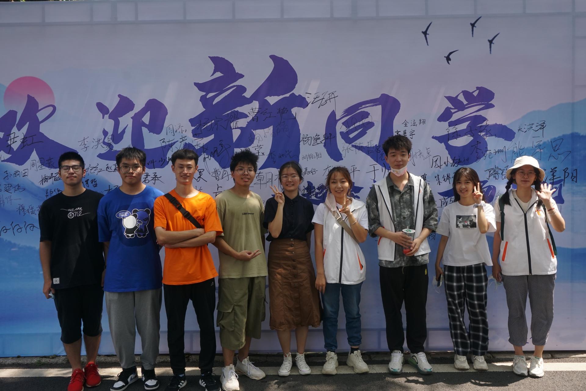 完成报道后与家人在签名墙留下了大学里的第一张合影