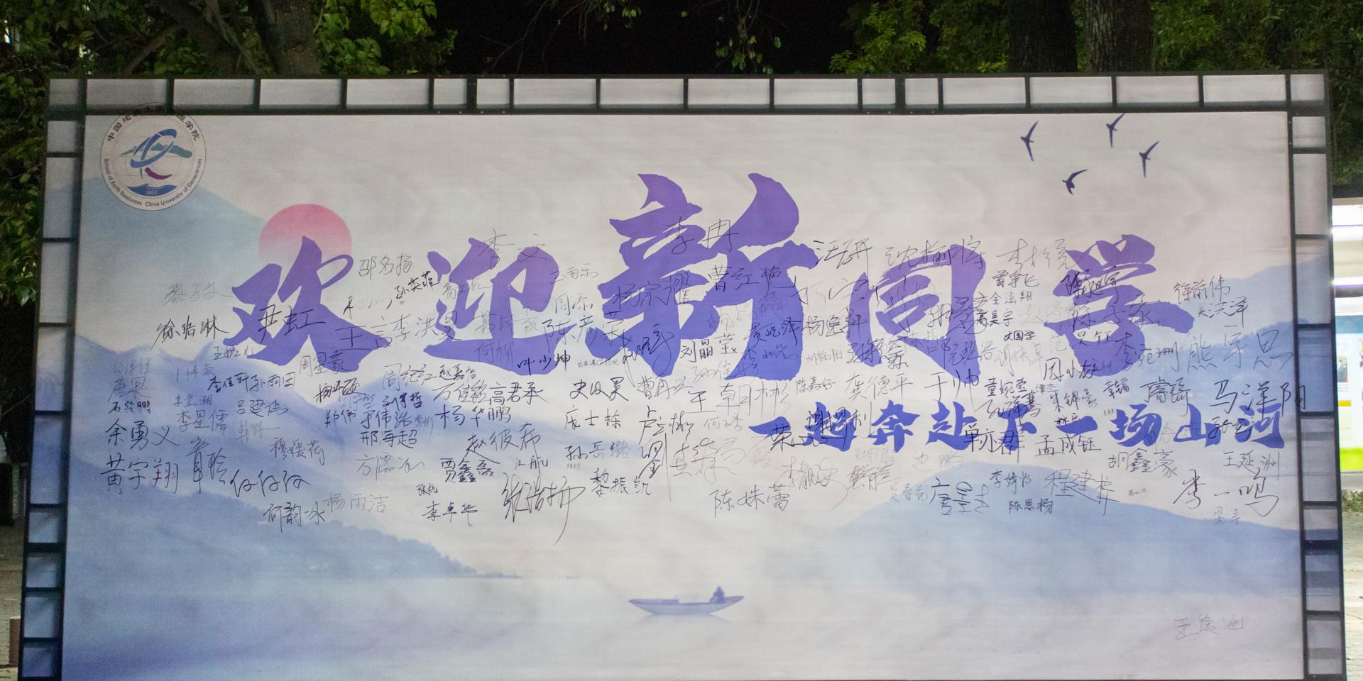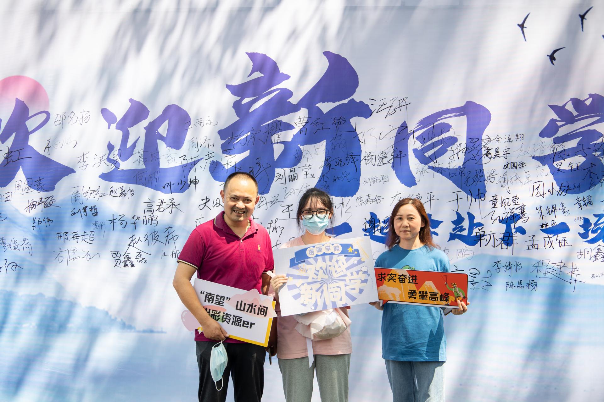 迎着朝阳,第一位同学在签名墙上留下了他的名字