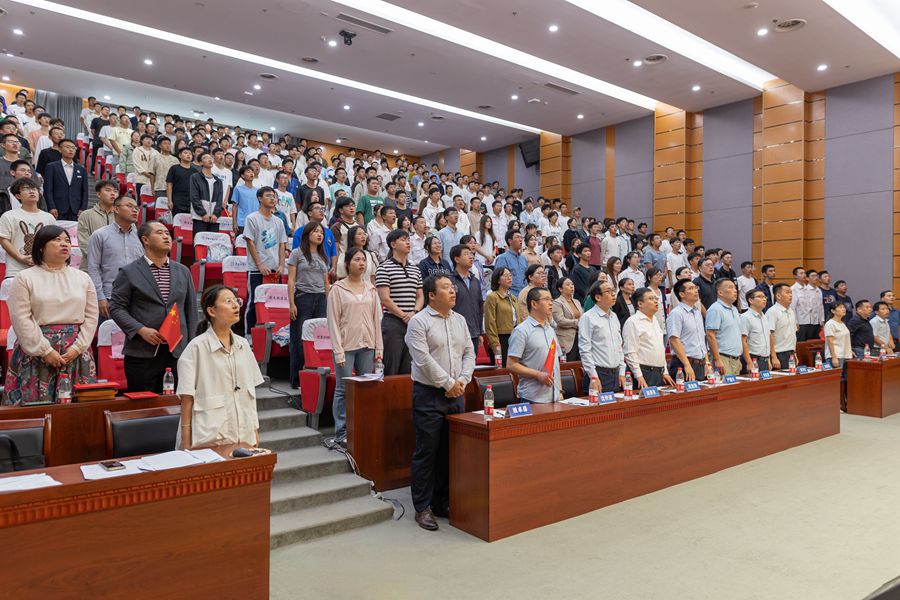 典礼在雄壮的国歌声中开始。全体院领导,各系党支部书记、主任,2023级班主任,教师代表,院直全体老师,2023级助理班主任、“党员责任区”驻班党员,高年级学生代表,全体2023级本科生参加典礼。2023级本科生辅导员彭鑫主持典礼。