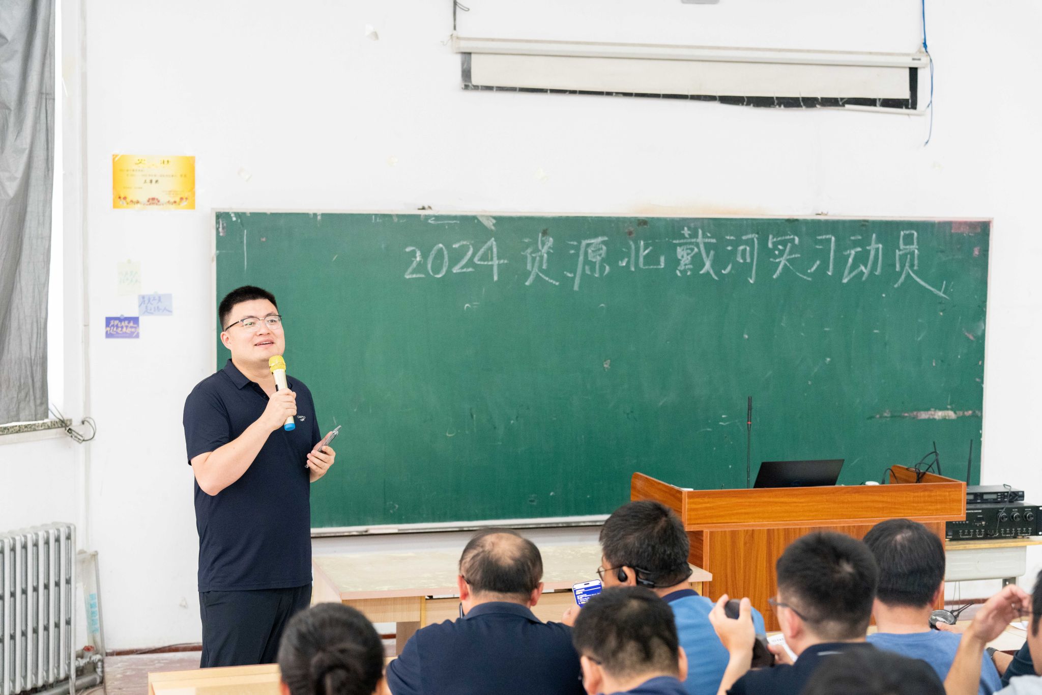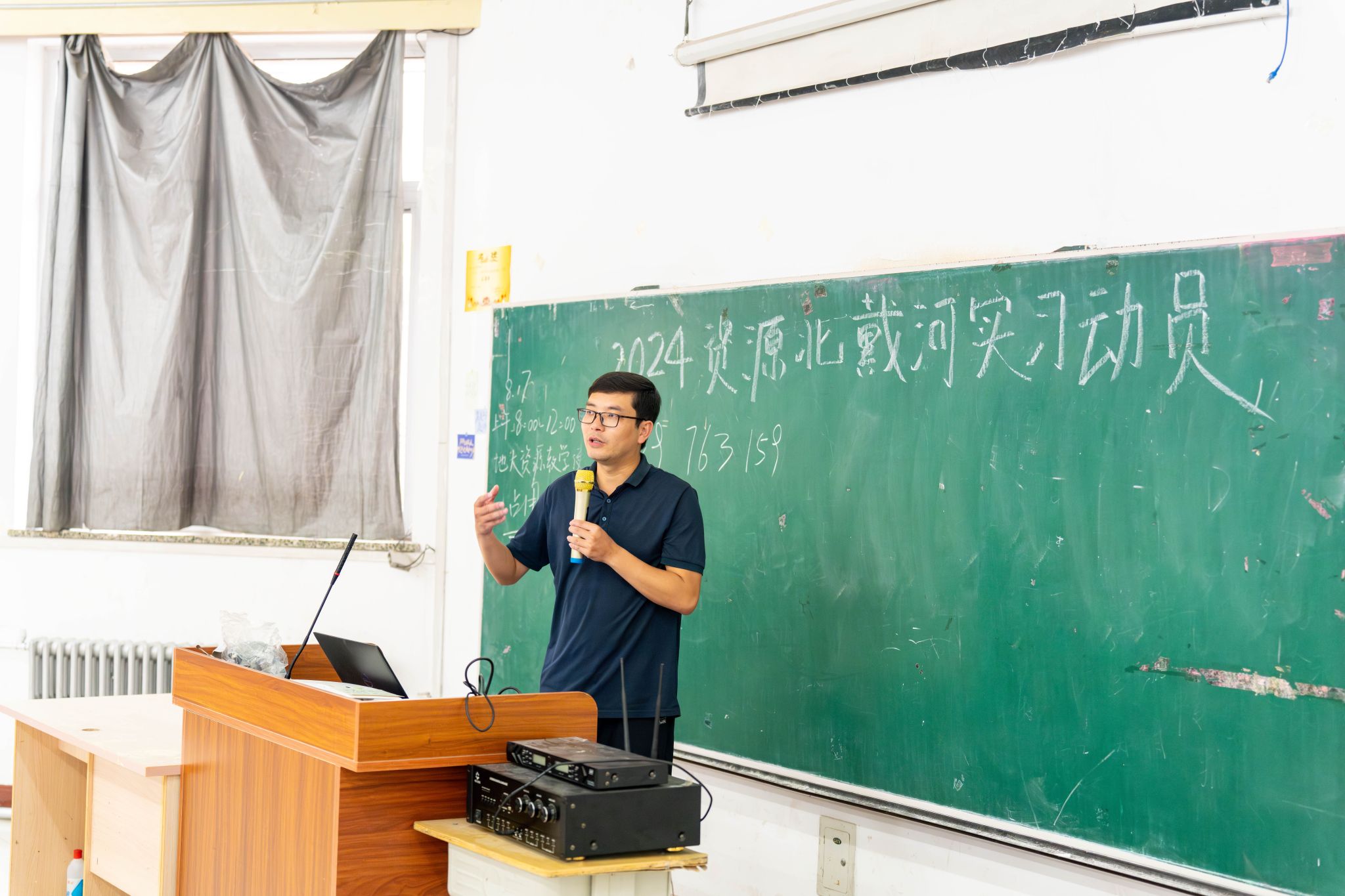 集中动员结束后,学院在107教室举行集中教学。董田老师介绍8条野外路线的教学任务、注意事项和课程考核方式,再次强调安全是实习教学管理的重中之重。