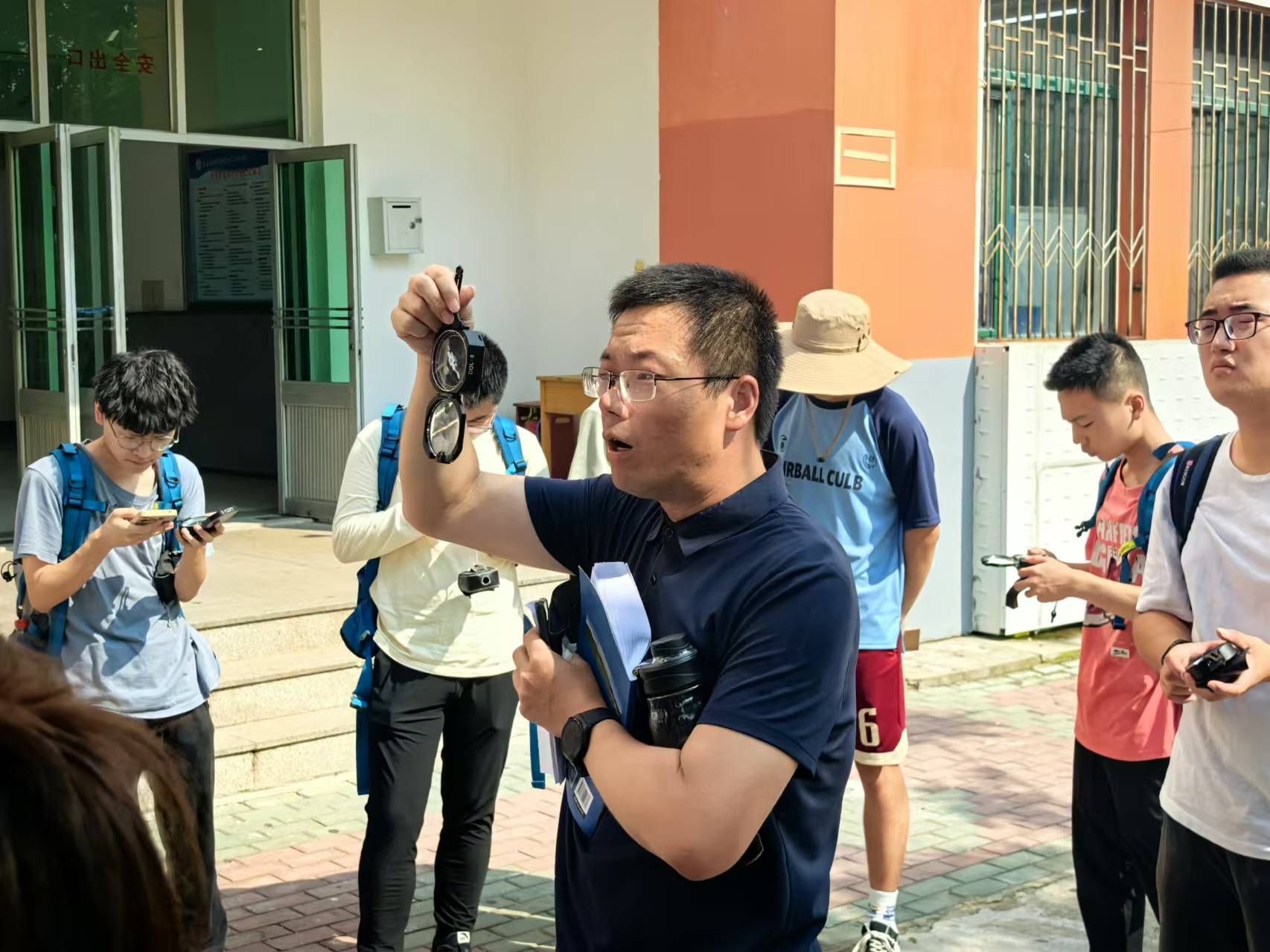 带班老师讲解实习内容和罗盘使用方法