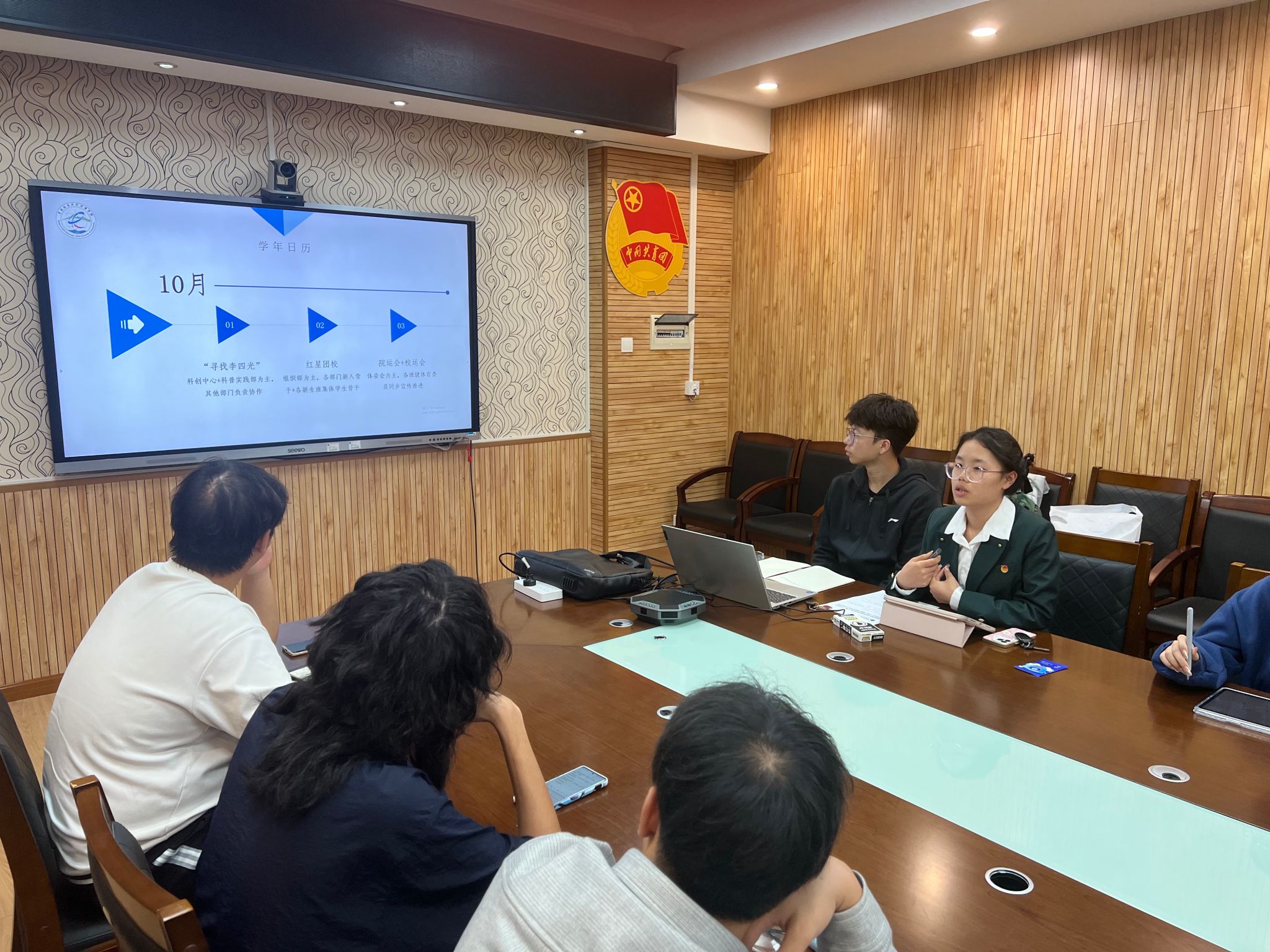 在南望山校区西区文华楼201召开本科教育教学审核评估专题工作会(团学骨干专场)暨新学期团学重点工作研讨会。学院党委副书记谭文伦、团委副书记(主持工作)刘睿,2024届团学组织主席团成员,团委直属部门、学生会、研究生会、红星青年志愿者协会、融媒体中心负责人及部门团学骨干参与会议。