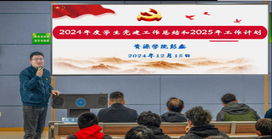 谭文伦总结讲话。他表示,本次述职会议是对学院年度党建工作的一次重要总结,也是一次学习交流。2024年,在学院党委的坚强领导下,各党支部能够紧紧围绕中心工作,认真履行党建工作主体责任,不断创新党建思路,强化工作举措,取得了一定成效,但还存在差距。他讲到,各学生党支部要按照学院党建“双创”工作部署,对照“七个有力”持续加强样板支部培育创建,一是强化党性教育,各党支部要充分发挥学院党建指导员和党支部战斗堡垒作用,创新理论学习方式,深化学习成果转化,增强理论素养和政治自觉性,引导党员们树立正确的价值观和良好的行为准则,做到学思践悟、知行合一;二是要强化纪律意识,学生党员要以身作则,严于律己,学生党支部要认真落实全面从严治党要求,提高党员队伍建设质量;三是强化结对共建,持续加强教工党支部与学生党支部结对共建,巩固“党-团-班、师-研-本”工作格局,以党的建设促进导学团队和班级建设;四是强化品牌意识,深入结合学科特色与专业优势,总结经验,挖掘亮点,明确思路,创建培育更多具有资源特色的样板党支部,促进支部建设与学生成长同向同行、互融互通,为服务能源强国的伟大事业注入坚定的红色动能。