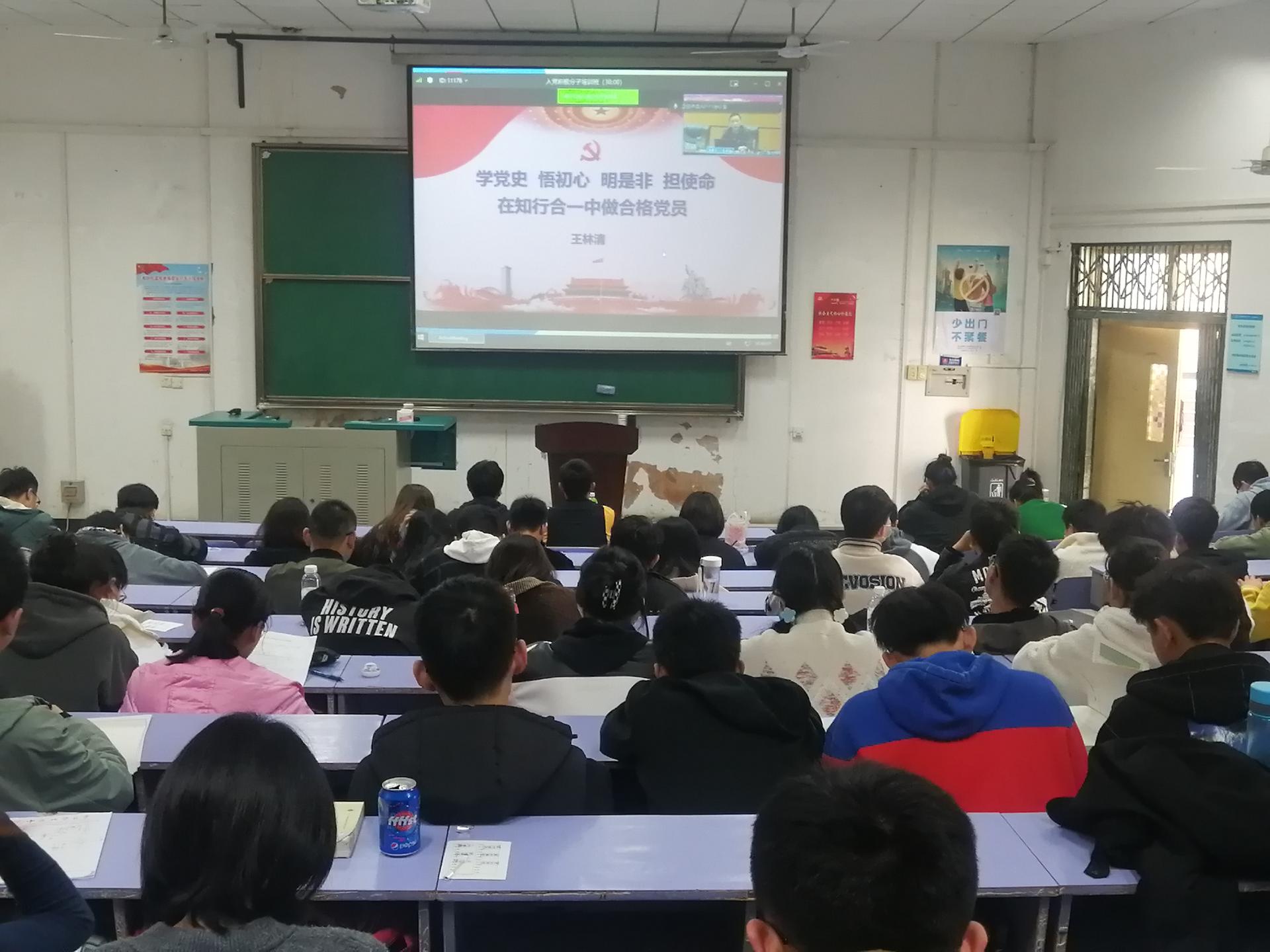 1125日下午,全体学员集中在线参加学校第七十一期入党积极分子培训班开班暨党史学习教育专题党课。校党委副书记王林清以《学党史 悟初心 明是非 担使命——在知行合一中做合格党员》为题,通过辛亥革命等旧中国时期救国救民革命道路探索、以建党精神为源头的精神谱系的形成和意义、地大人的报国事迹和时代担当等内容,讲授党史学习教育专题党课,鼓励青年学子在积极向党组织靠拢中,找准思想的明灯、行动的方向,让青春在努力奋斗中绽放光彩。