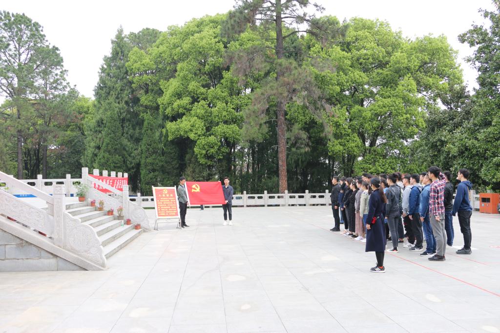 黄麻起义烈士纪念碑矗立于烈士陵园苍翠之间。全体成员列队整齐,向革命烈士三鞠躬,默哀一分钟,举行庄严的纪念仪式。全体党员面向党旗重温入党誓词,“我志愿加入中国共产党……”一字一句,是对先烈深深的崇敬与怀念,更是对自己强烈的鞭策与激励。