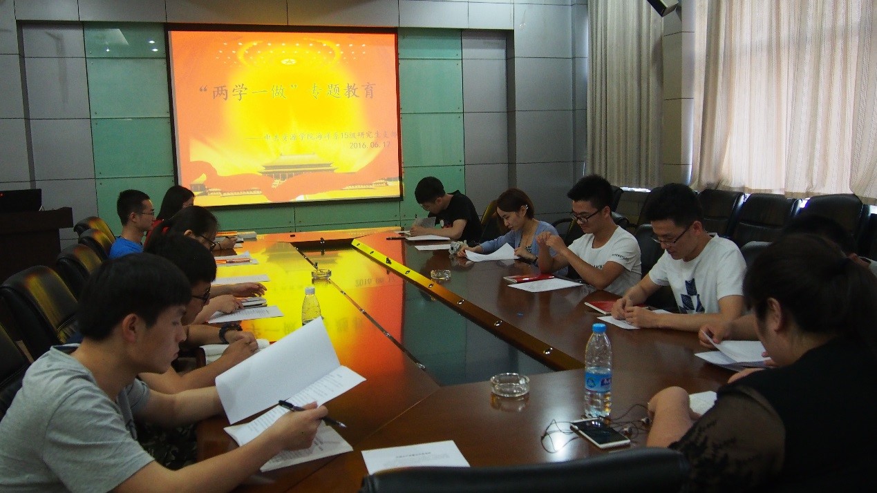 海洋系15级研究生支部在主楼930会议室开展了“两学一做”专题学习会。会议由党支部书记肖倩主持,海洋系15级党支部12名党员,以及3位入党积极分子参与了学习与讨论。