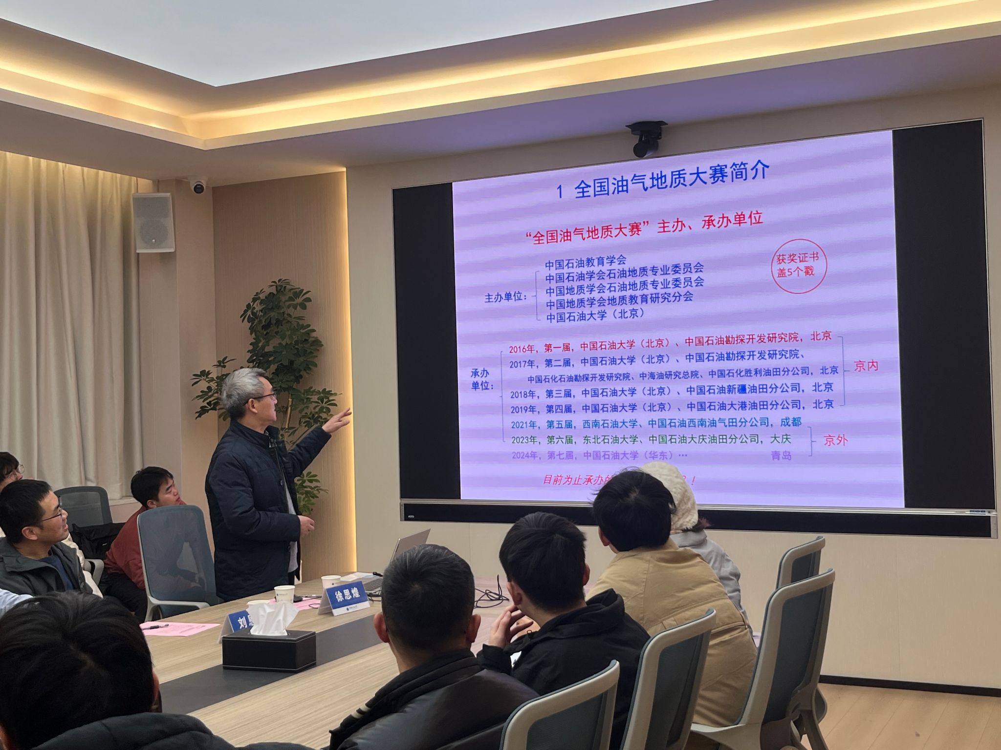 蒙冕模做赛前动员。他充分肯定正妹AV 在上一届大赛取得的优异成绩。他指出全国油气地质大赛是一项集学术性、文化性、交流性于一体的重磅赛事,是同学们将理论知识付诸实践的绝佳平台。他谈到,学校高度重视本届大赛,在接到通知后,正妹AV 正妹AV 、海洋学院等单位成立了联合指导教师群,组建了师生参赛群,开展备赛经验分享会,稳步推进大赛备赛工作。他希望同学们抓住机会,积极参与,在指导教师的带领下全心备战,以优异的成绩展现地大师生奋力拼搏、追求卓越的精神风貌,争取在本届大赛上取得优异成绩。