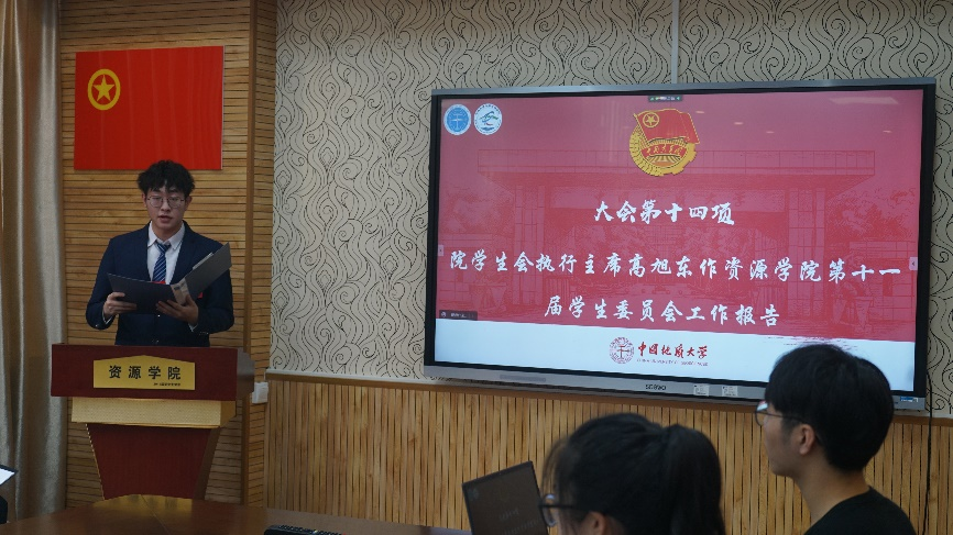 院学生会执行主席高旭东代表学生会作题为《强文化底蕴,兴实干之风,在全心全意为同学服务的道路上奋力奔跑》工作报告。报告中全面回顾了过去一年间学生会在营造学习氛围、打造成长舞台、培养组织人才等方面的工作成效。他指出,在未来一年,学生会将在助力同学成长成才、巩固学风建设成果、加强专业引领等方面持续发力,立志淬炼成为每个同学在困难挫折中能够想得起,在拼搏征程中愿意依靠,在沮丧迷茫时可以倾诉的“家”组织。