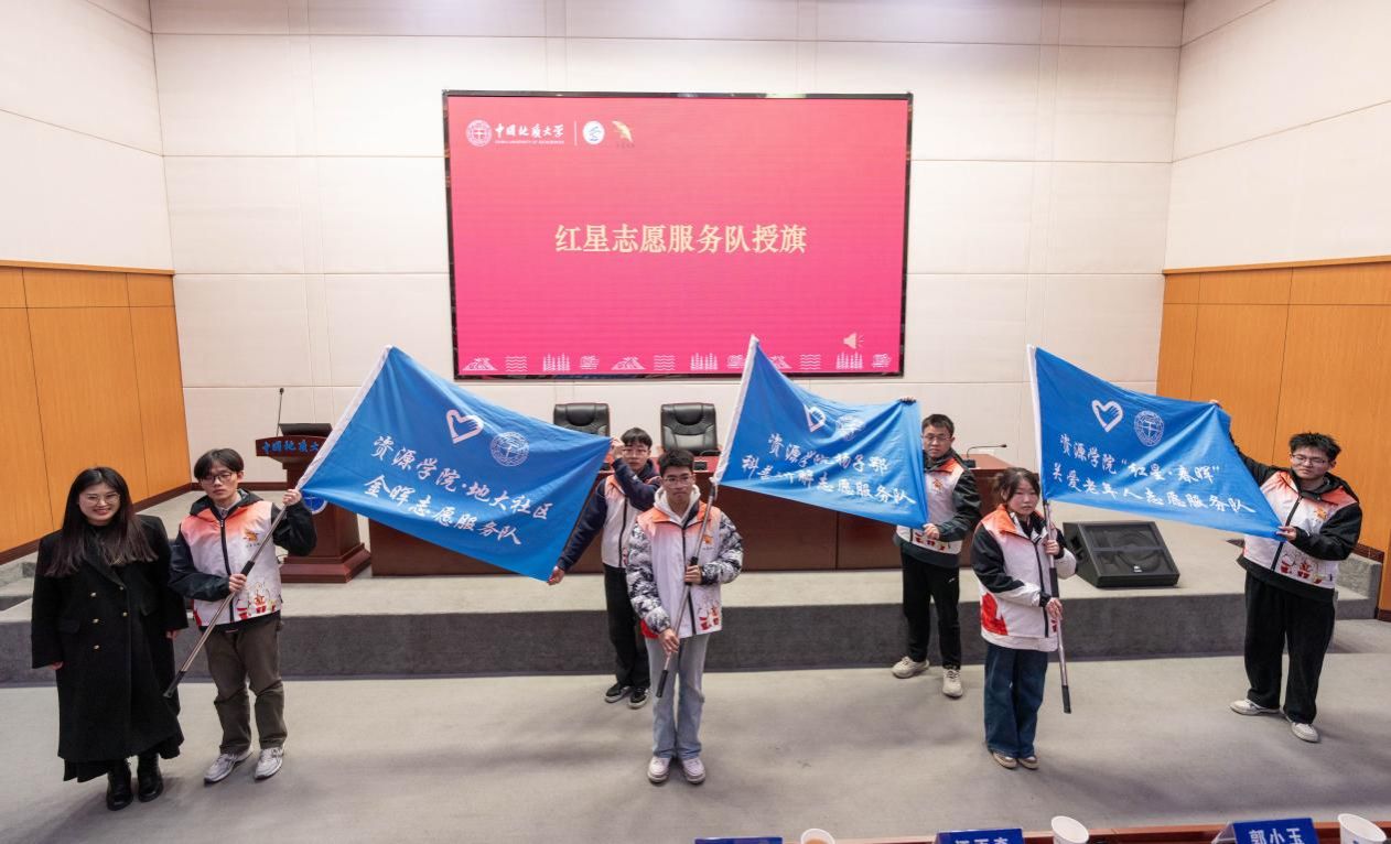 随后,校团委副书记郭小玉为学院金晖、春晖和扬子鄂科普讲解志愿服务队授旗,一递一接,承载的是对青年志愿服务工作的重托,更是责任与使命的传递。