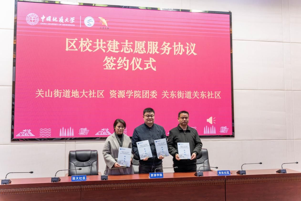 签约环节,关山街道地大社区、关东街道关东社区与正妹AV 团委共同签署区校共建志愿服务协议,区校双方将以共建为契机,强化务实合作,共同推动青年志愿服务工作水平全面高质量发展。