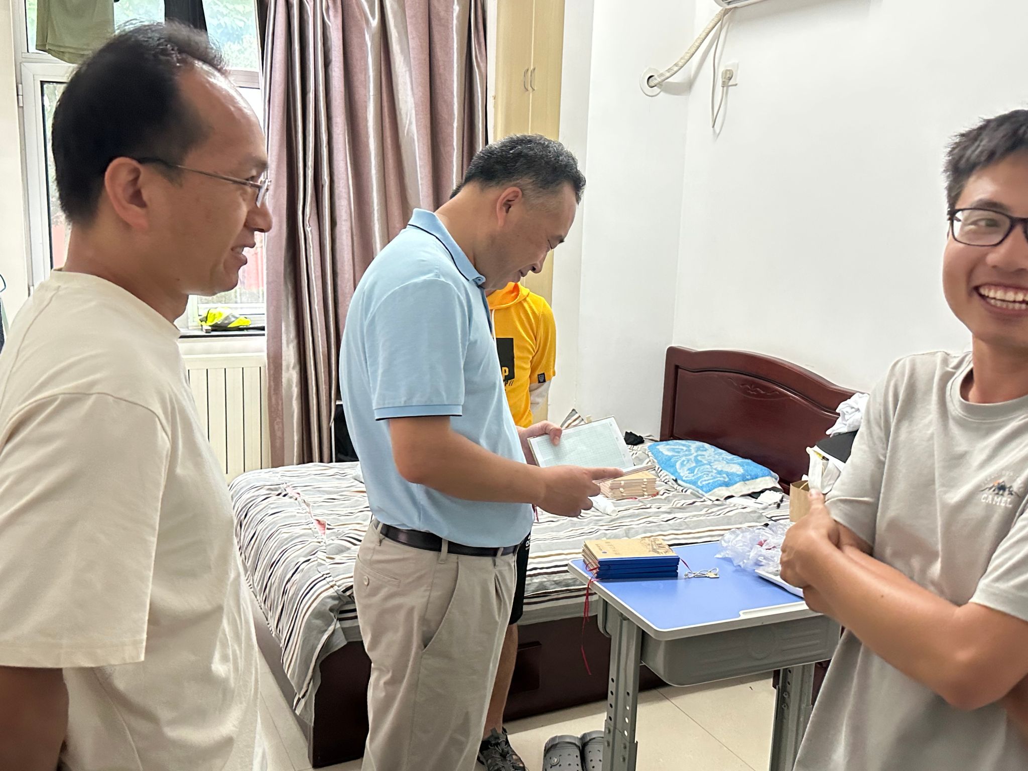 在学生宿舍,他耐心细致询问了同学们在实习站的学习进度与生活状况。他叮嘱同学们,在外实习要注意安全,一切行动听指挥,安全、顺利、圆满完成实习。
