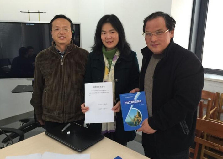 (左:三馆党总支书记帅斌,中:石工系党支部书记谢丛姣,右:图书馆馆长徐世球)