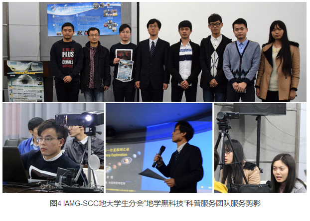 资源系杨振老师带来的“深海寻宝——西南印度洋硫化物矿产勘查”科普报告,同学们对深空、深海地质工作中各种高新技术手段以及科研过程充满了兴趣。接下来,徐启东教授、陈建国教授、黄倩老师及杨振老师就地质专业的苦与乐、行星地质及海洋地质方面的专业问题、地质类专业的人才培养等话题与学生开展了互动,学生们积极踊跃提问,气氛活跃,老师们幽默风趣而不失语重心长地为同学们指点迷津。最后,国际地球科学协会地大学生分会(IAMG-SCC)介绍了研究生方面的学习活动及将来在本科生中的会员发展计划,并继续分享了“救援火星”科普电影。