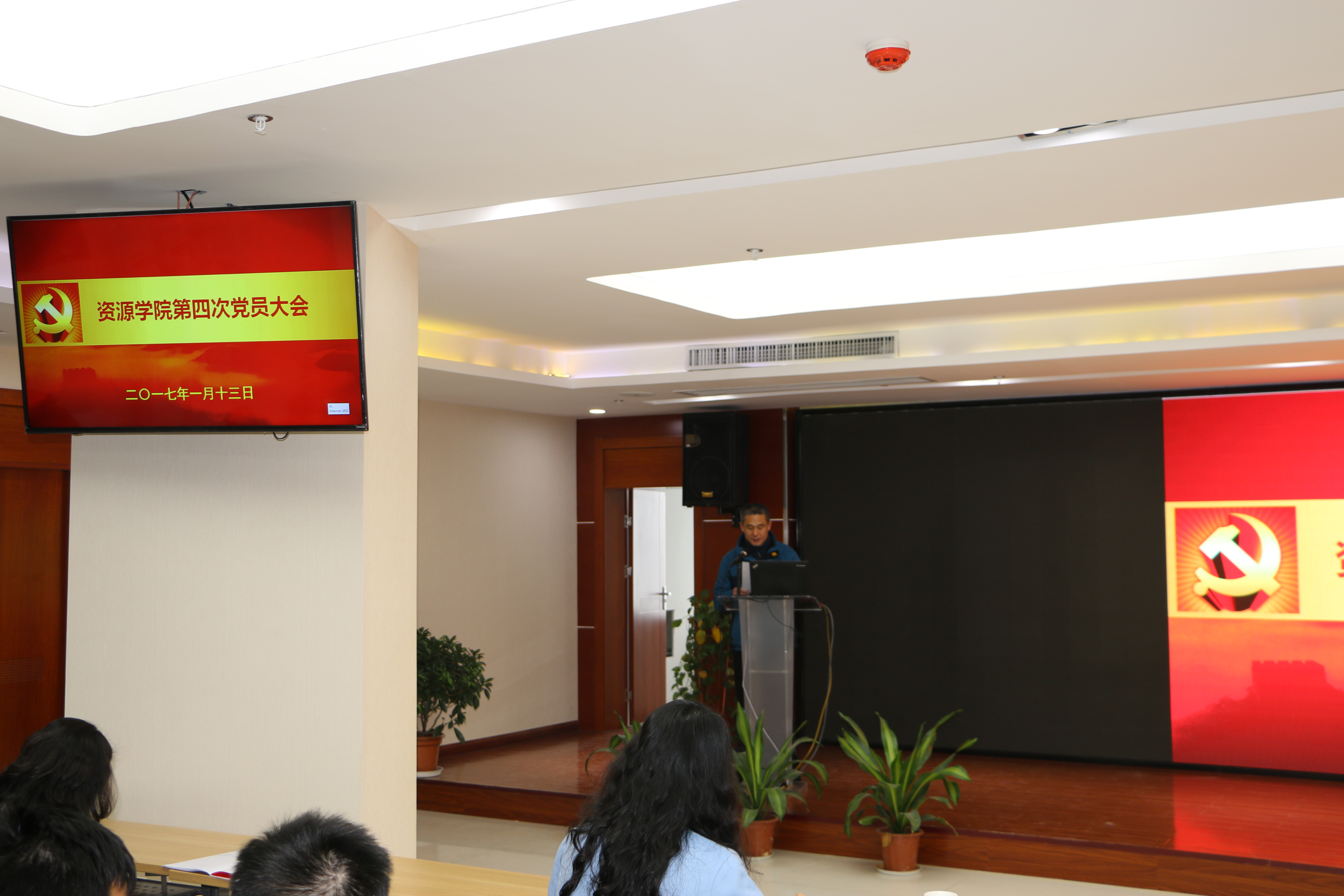 第四次党员大会暨第四届党委委员、纪委委员选举大会在珠宝大楼819多功能报告厅举行。全院教职工党员、学生党员代表、民主党派、无党派人士和退休党员代表共87人参加会议,校党委组织部戴庭勇出席大会,会议由院党委副书记张建华主持。