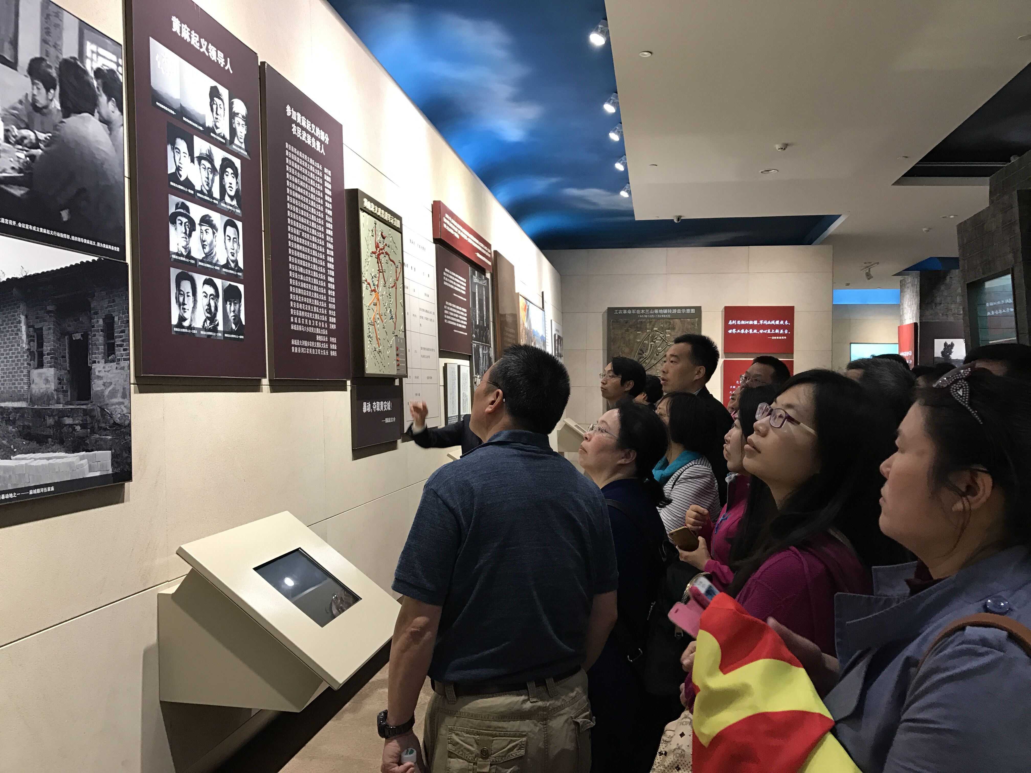 随后,在讲解员的带领下,大家参观了黄麻起义和鄂豫皖苏区革命历史纪念馆、将军馆、李先念纪念馆和董必武纪念馆等。在革命历史纪念馆,除了观看革命英烈的名册、英雄事迹介绍、文物等外,还观看了馆内利用声光电等高科技技术对黄麻起义场景的三维再现短片,大家的思绪被带回到那枪林弹雨的革命年代。纪念馆馆内的每一幅历史画卷、实物等都向我们诉说着那令人难忘的年代,那无比震撼的故事。“小小红安,人人英雄,锣鼓一响,四十八万,男将打仗,女将送饭”就是其真实写照。将军馆陈列的将军资料让我们知道为何红安被称为中国第一将军县。李先念纪念馆和董必武纪念馆也让全体党员了解到两位国家领导人为中国革命和新中国的建设所作出的突出贡献。
