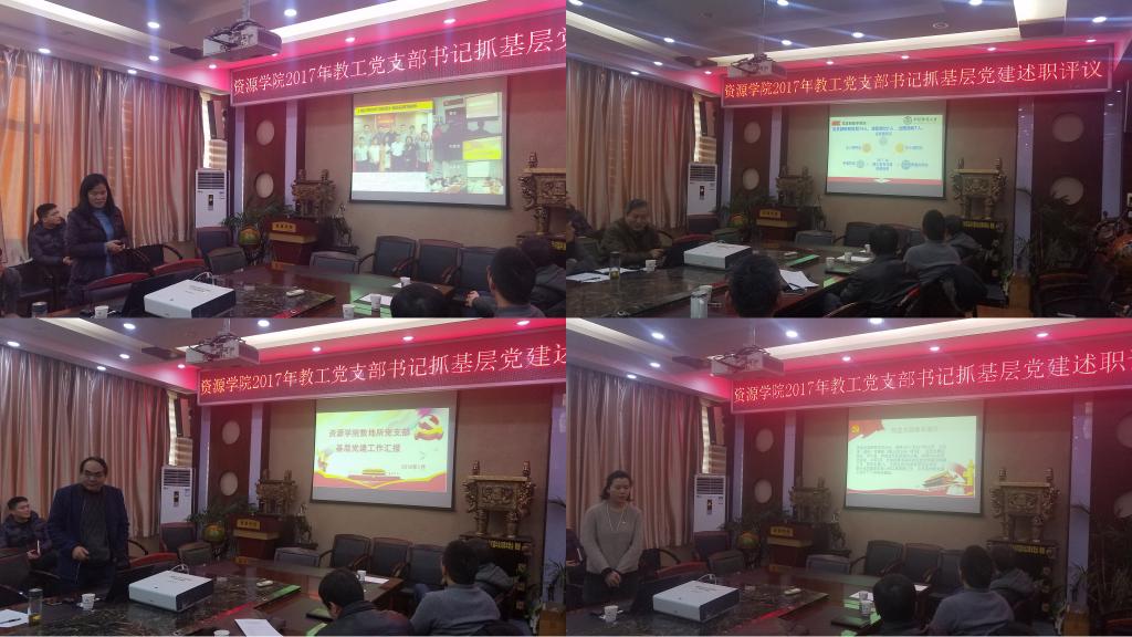 各支部汇报各有亮点,其中资源系支部以打造精品党课,丰富党员教育深度广度为抓手,在落实“两学一做”学习教育常态化制度化的同时,在主题党日集中学习中加入《大国外交》、《将改革进行到底》等政治教育宣传片,极大的扩展了学习教育的丰富性和时代性,支部内“带头讲党课”氛围活跃,李建威同志的《延安精神及其时代意义》党课在学院给支部内受到广泛好评。