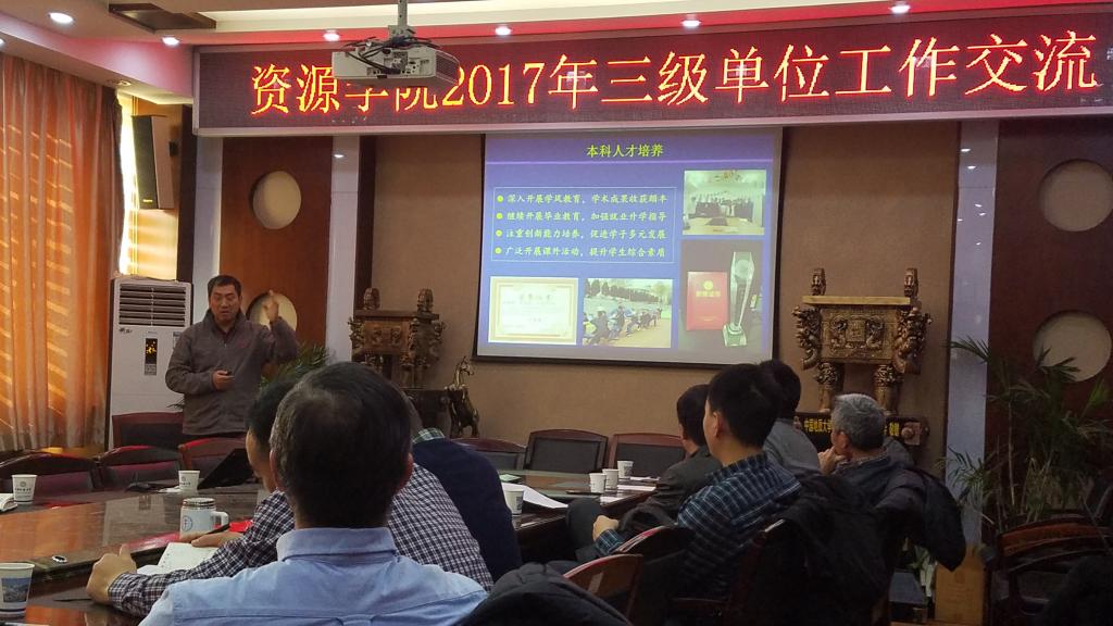 在主楼330报告厅开展2017年三级单位工作交流活动,学院领导班子成员、三级单位负责人、支部书记以及教授代表参加了活动,并担任评委。交流活动由学院党委书记郭秀蓉主持。