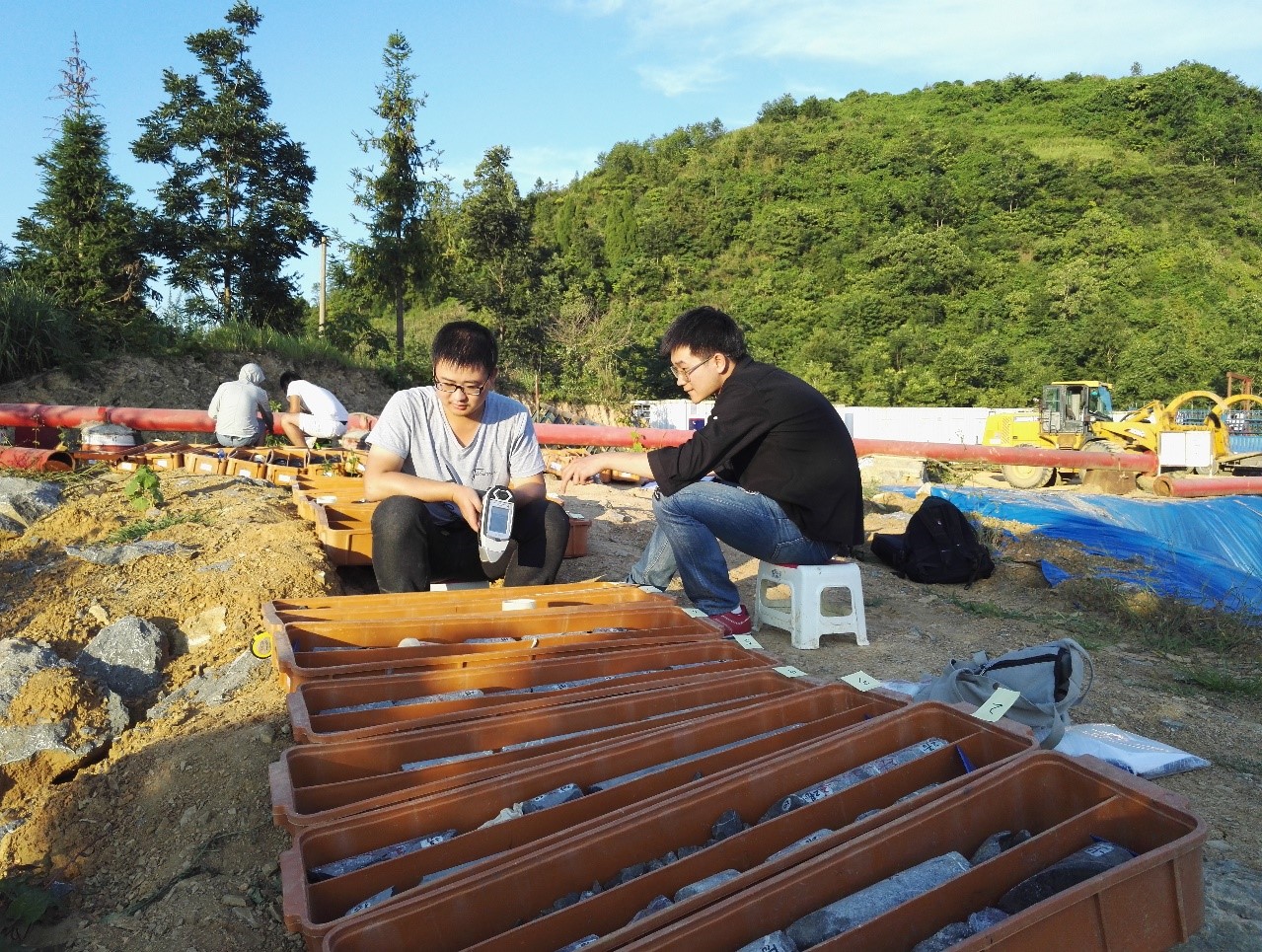 项目组在贵州省紫云县对黔紫页1井岩心进行观察、描述、并取样